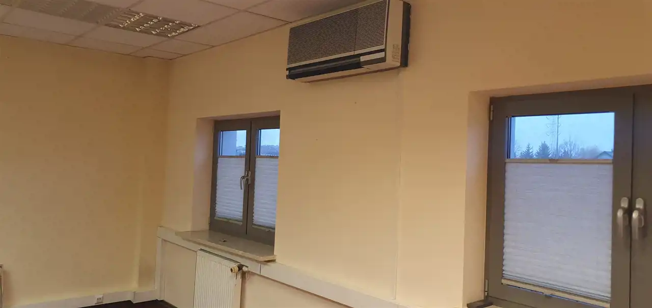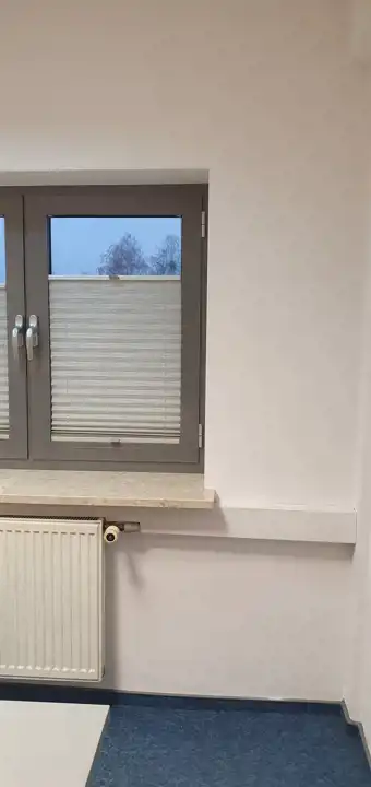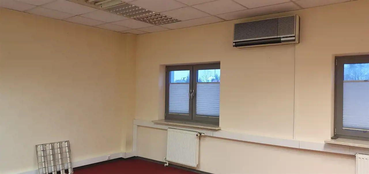 - Na podłogach wykładzina podłogowa, podwieszane sufity, nowe okna.