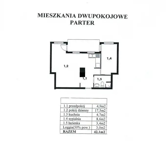 - Charakterystyka mieszkania 42 m2, 2 pokoje