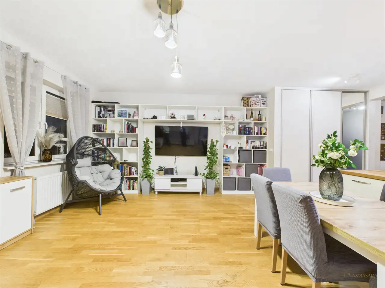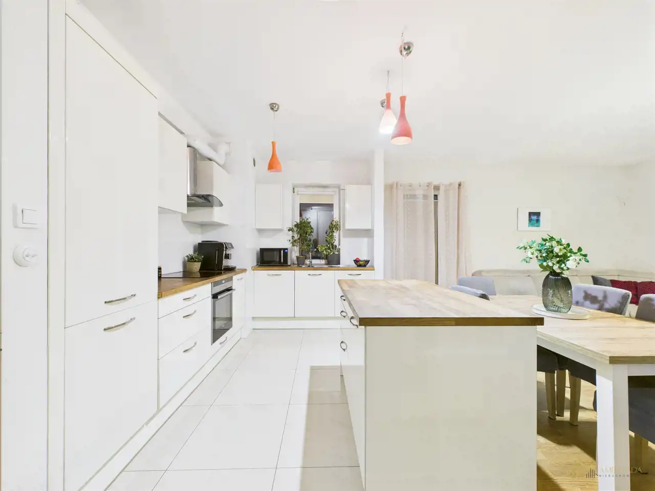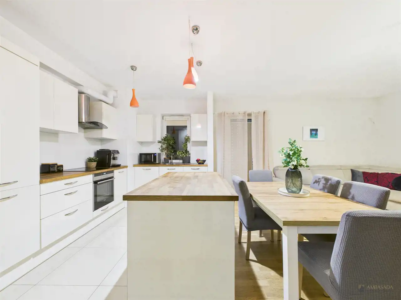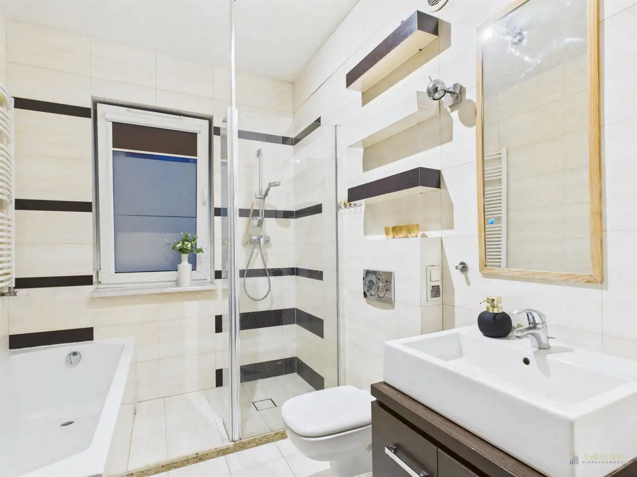 Wnętrza wykończone w spójnej i stonowanej kolorystyce. Kuchnia wyposażona w niezbędne sprzęty AGD tj. lodówka z zamrażarką, płyta indukcyjna, piekarnik oraz zmywarka. Na podłogach drewniana deska.