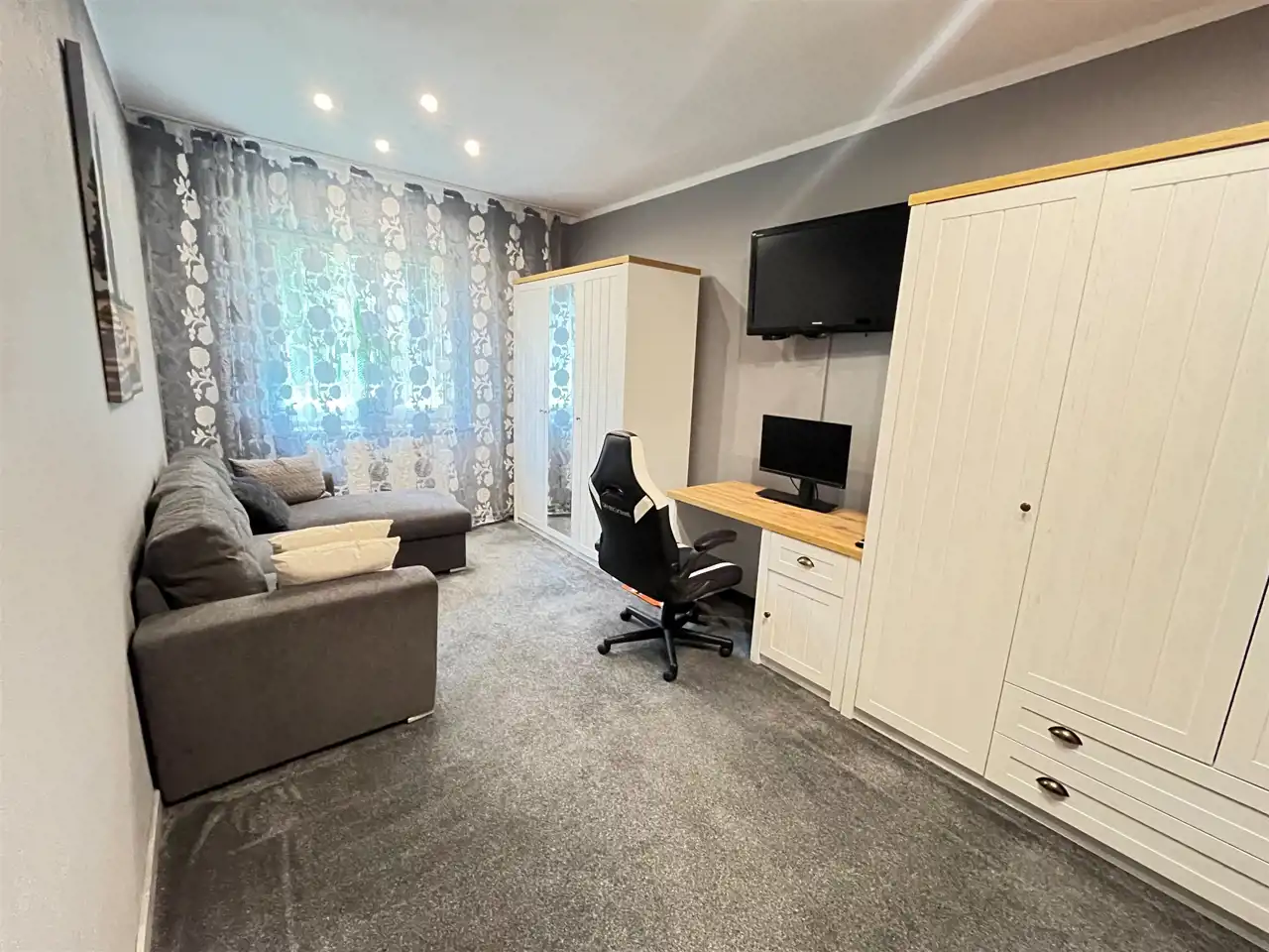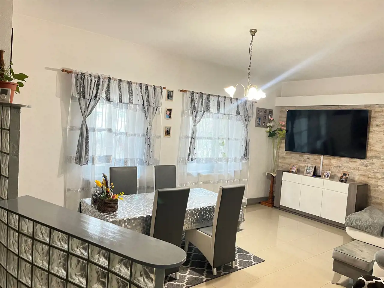 Jest jednak możliwość przerobienia kuchni i salonu na duży salon fryzjerski czy inny biznes w zależności od potrzeb nowego właściciela.