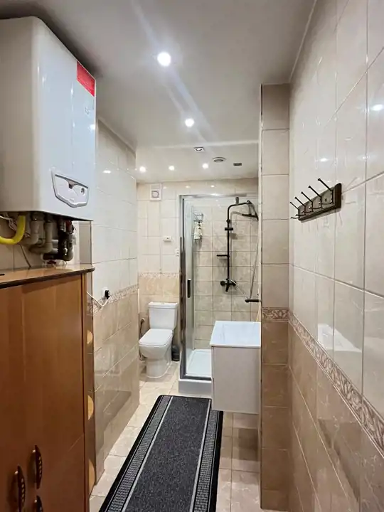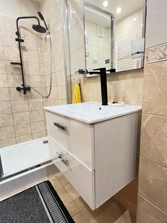 - łazienka z kabiną prysznicową i WC,