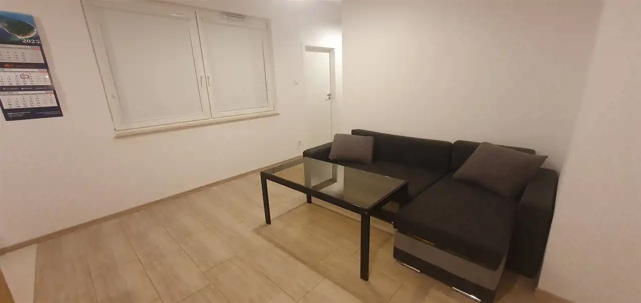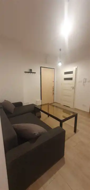 - W salonie narożnik, stolik. W sypialni łóżko, biurko, komoda. Na przedpokoju szafa.