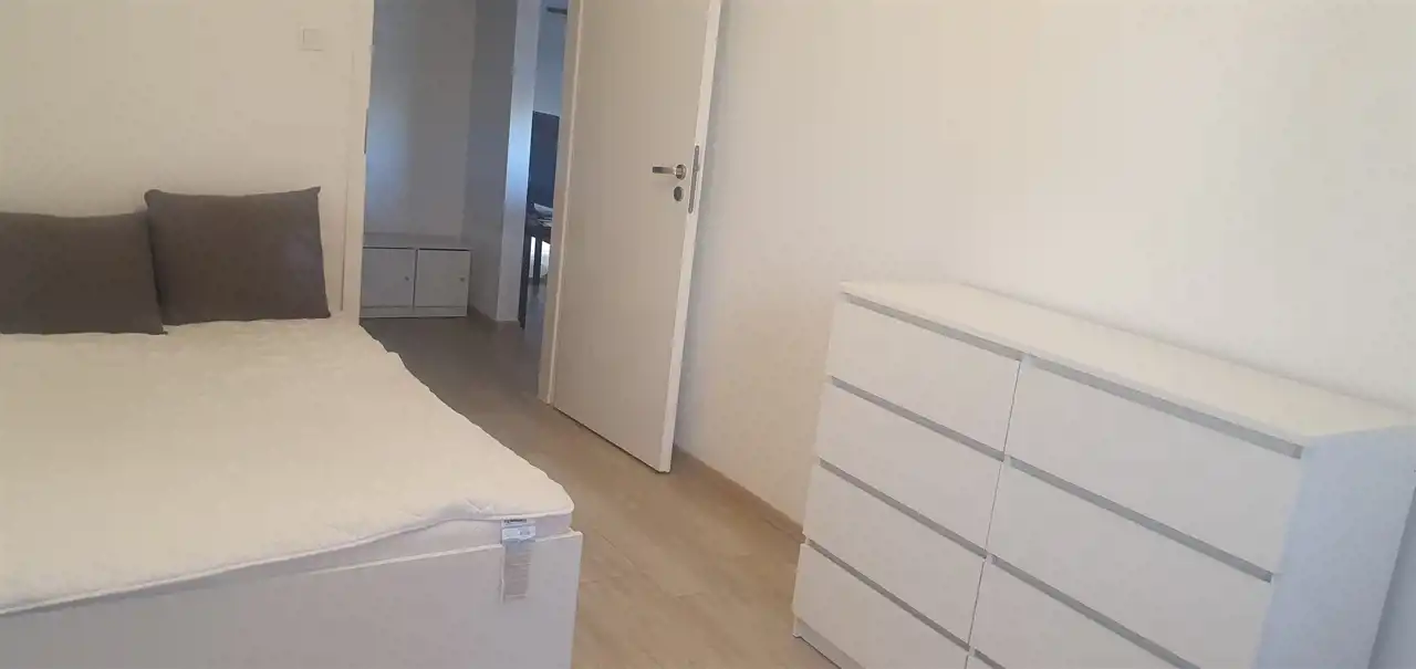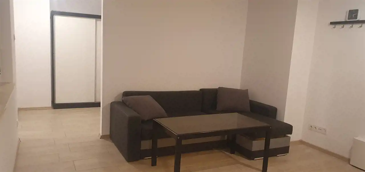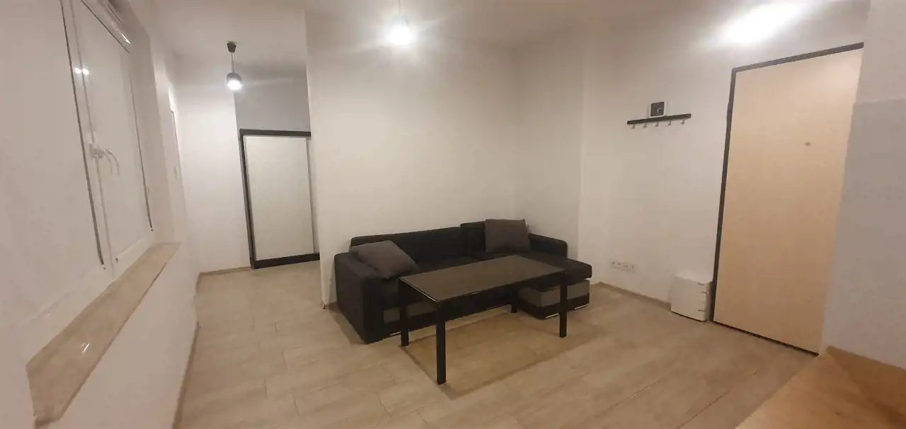 - W salonie narożnik, stolik. W sypialni łóżko, biurko, komoda. Na przedpokoju szafa.