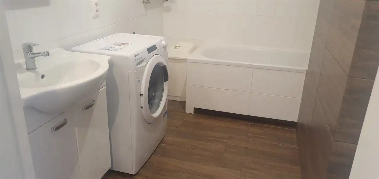 - Kuchnia wyposażona. W łazience wanna razem z wc, pralka.