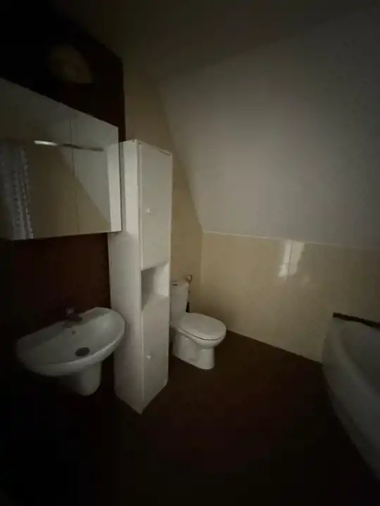 komfortowa łazienka z wanną, w której można się odprężyć po dniu pracy.
