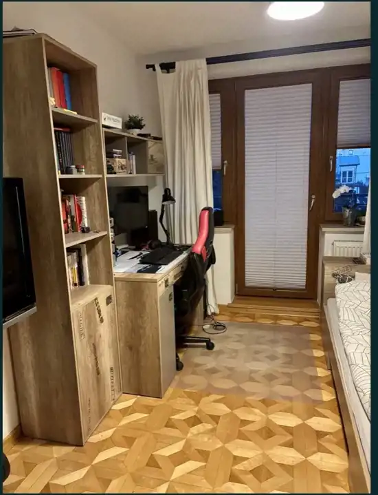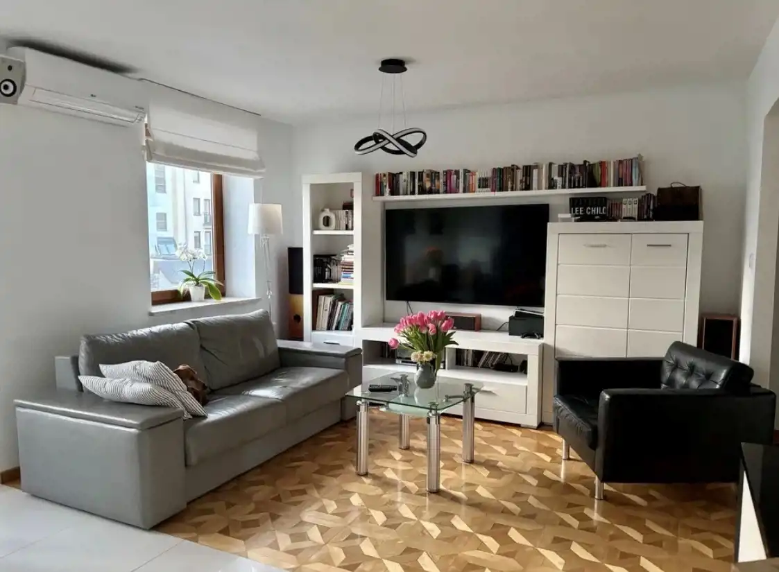 Mieszkanie zostało urządzone w nowoczesnym stylu, z dbałością o funkcjonalność oraz wysoką jakość wykończenia.