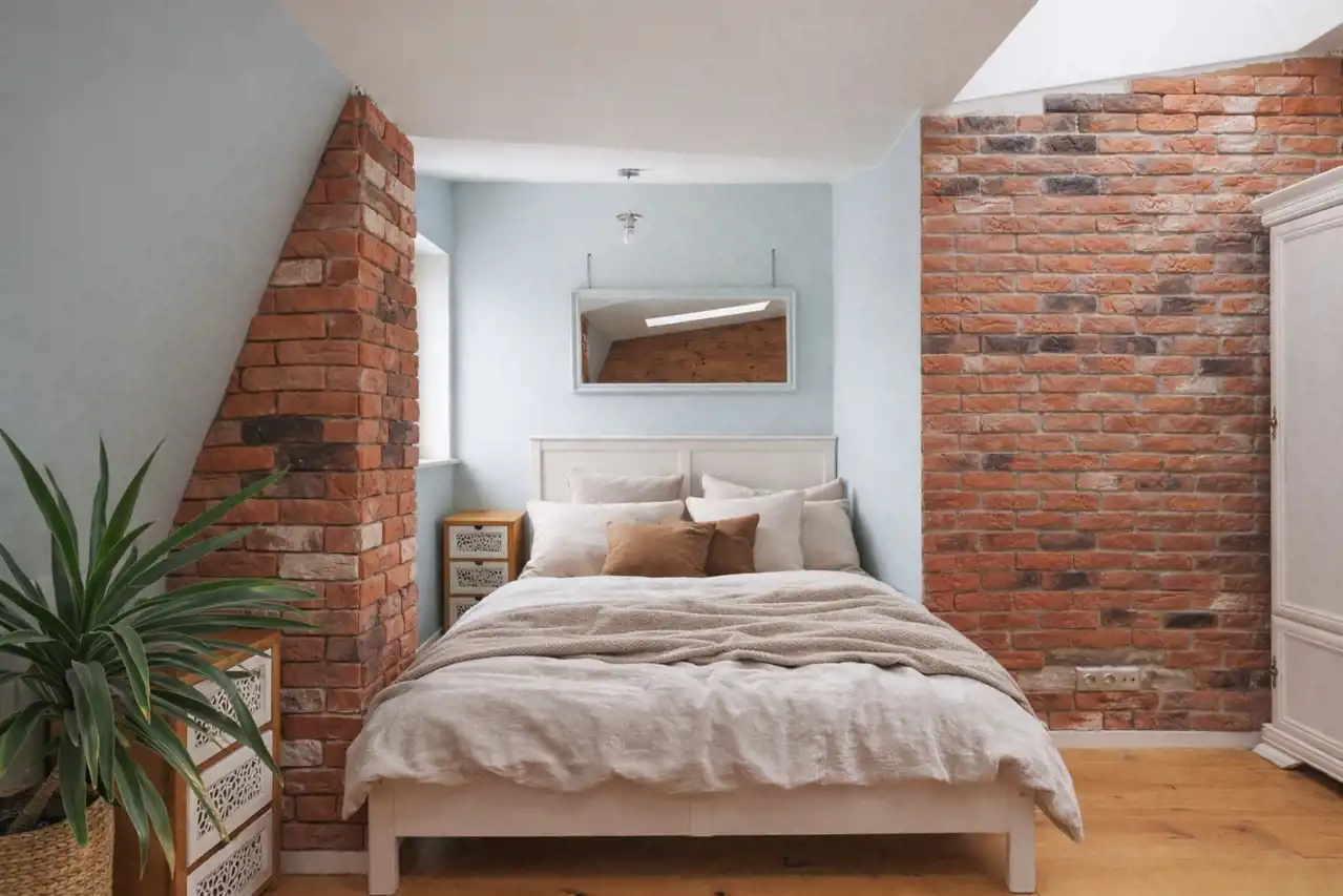 • dekoracyjna ściana z autentycznej cegły rozbiórkowej