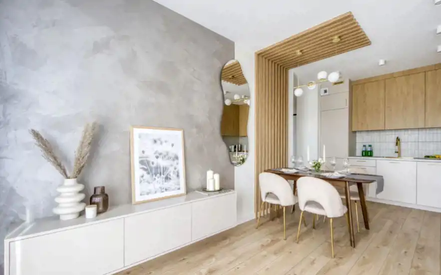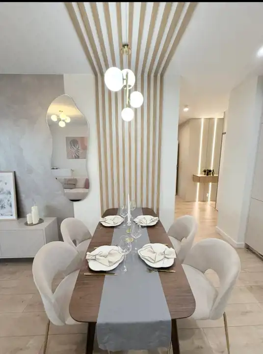 - Pełne wyposażenie AGD: lodówka, płyta indukcyjna, piekarnik, zmywarka, mikrofalówka i okap – wszystko, czego potrzebujesz!
