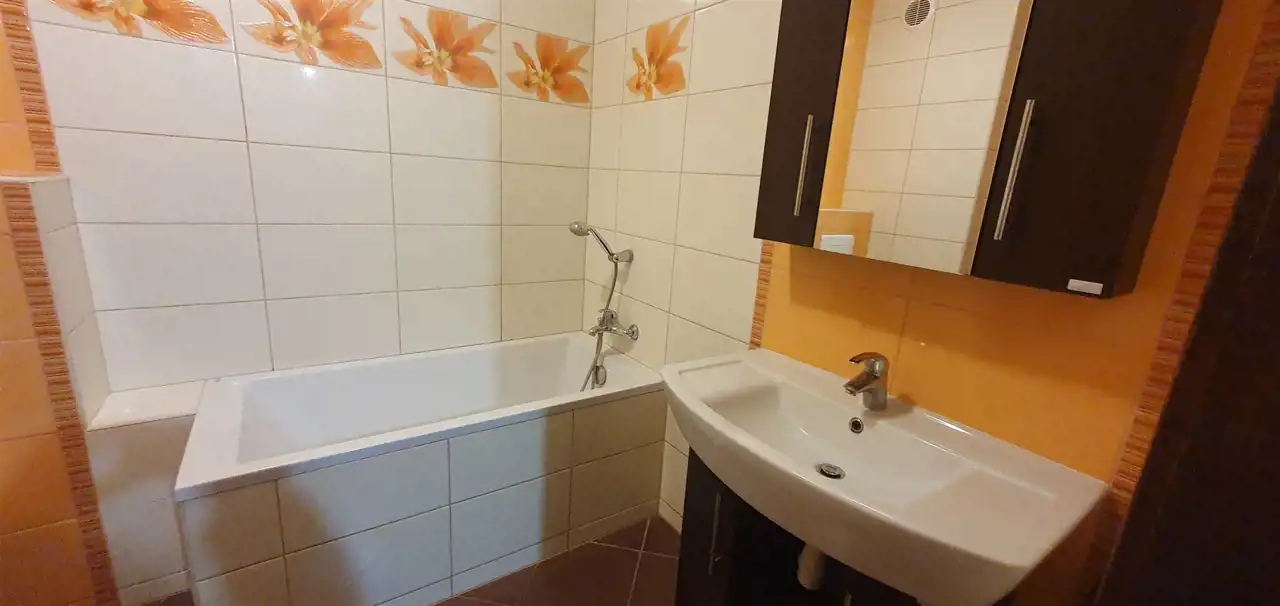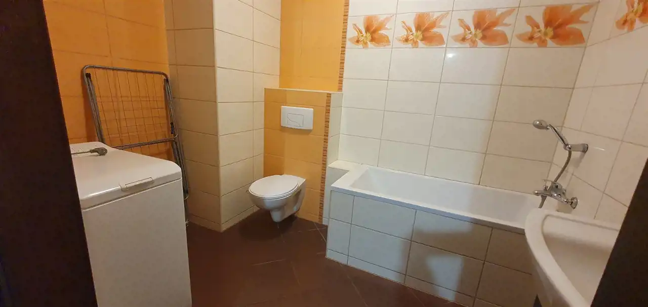 - Mieszkanie umeblowane. W kuchni- mała lodówka, płyta elektryczna, piekarnik, stół, 2 krzesła. W salonie narożnik, szafka rtv. W łazience wanna, pralka. Szafa wnękowa w przedpokoju.