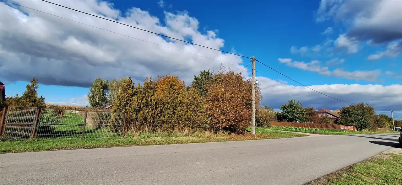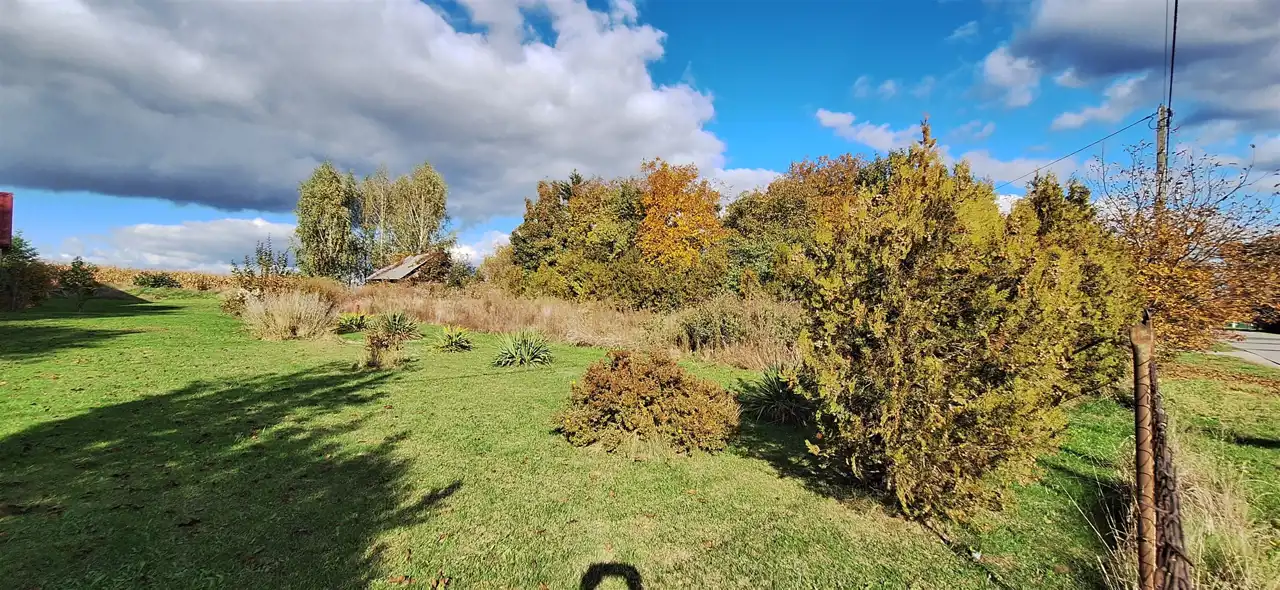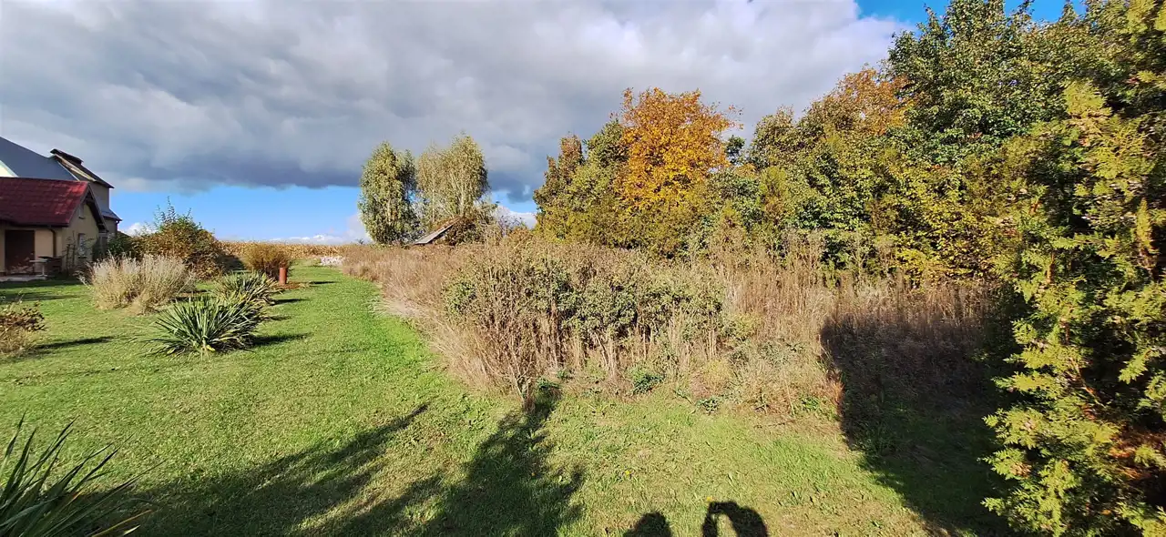 ►Teren działki od frontu z nielicznymi nasadzeniami (tuje, brzózki, samosiejki) zaś tył działki aktualnie dzierżawiony pod bieżącą uprawę.