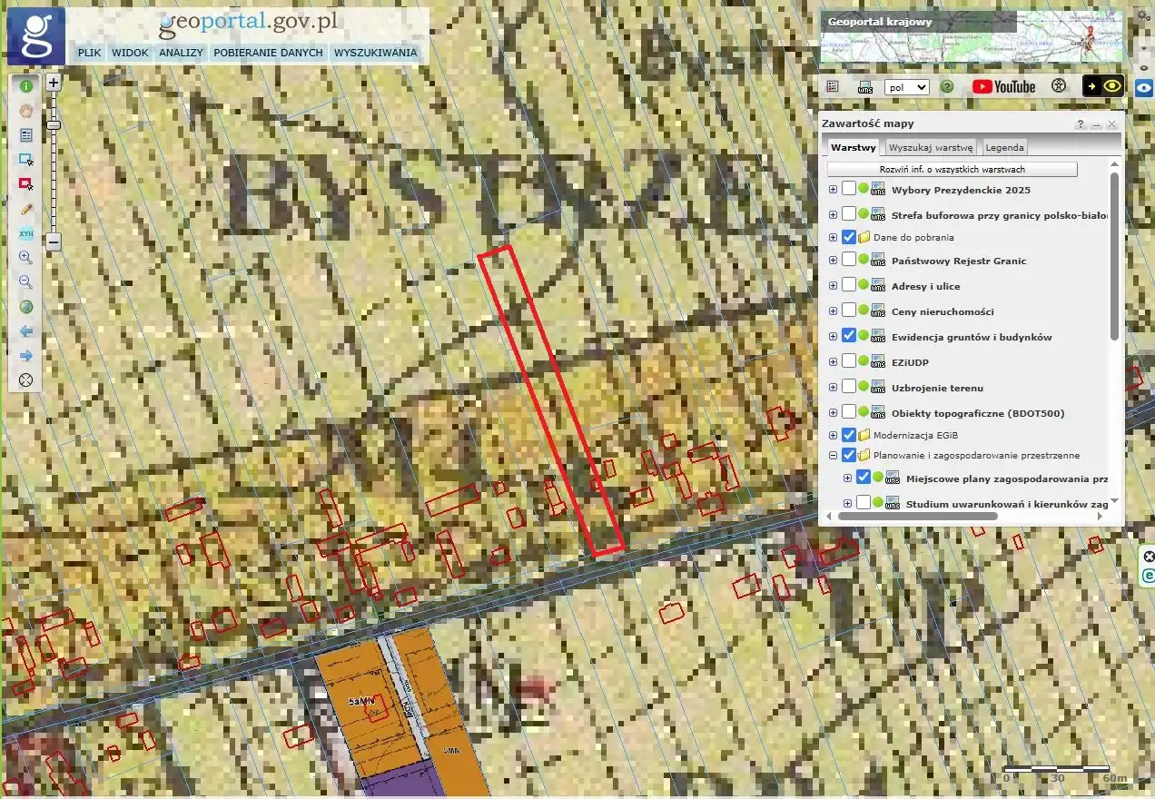 - Działka częściowo zagospodarowana, płaska, prostokąt