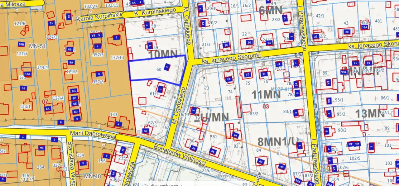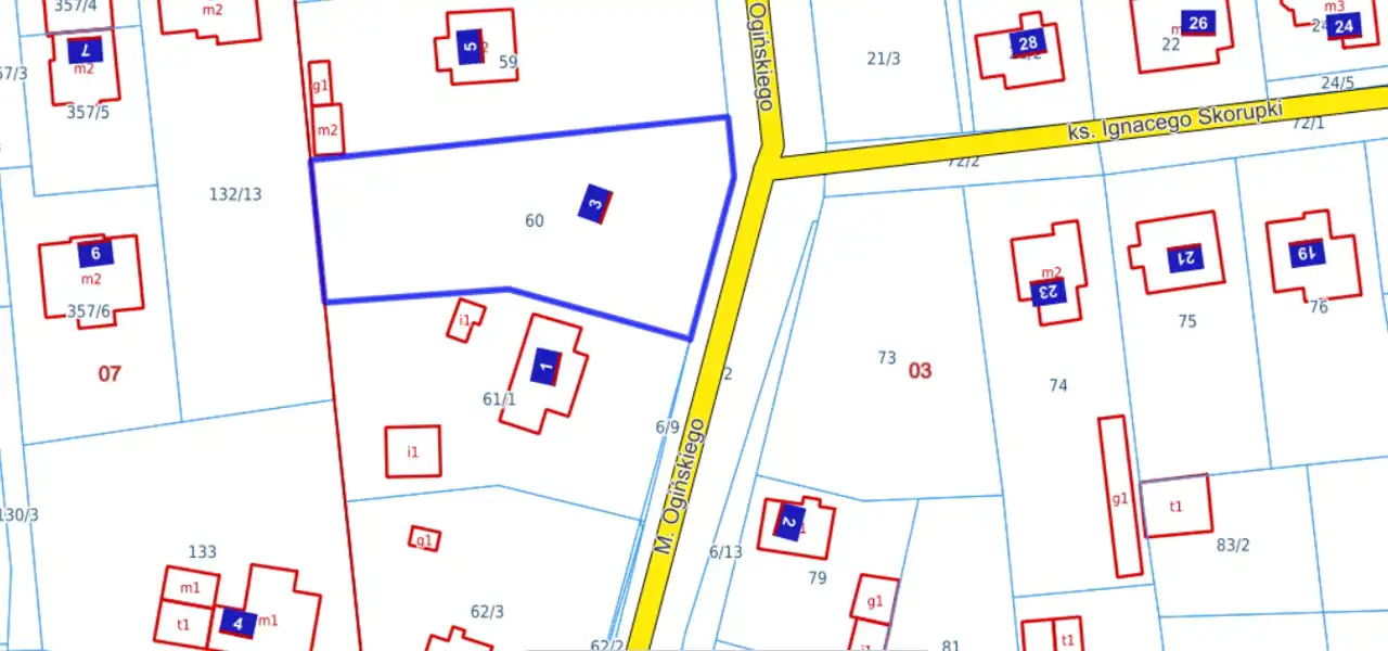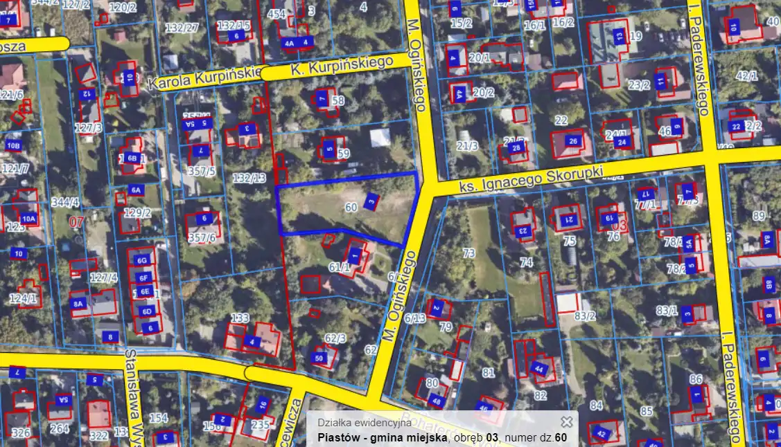 Piastów, ulica Ogińskiego 3, numer ewidencyjny 60, obręb 03.