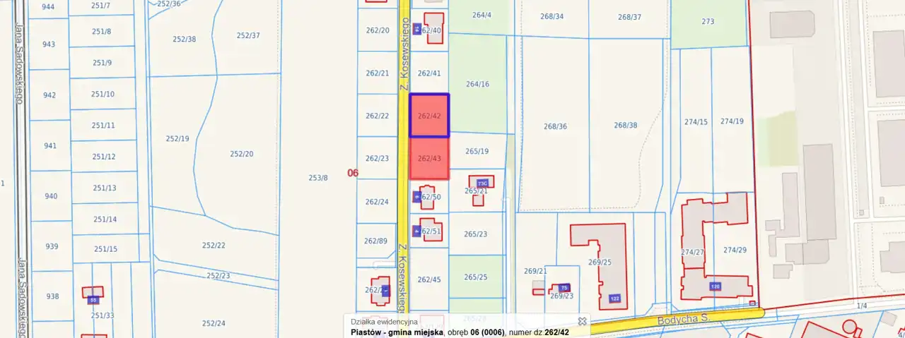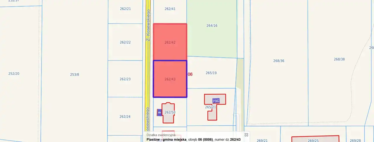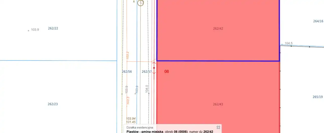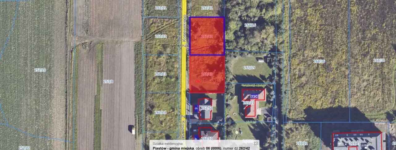 Do działki 262/43 dojedziesz wklejając w Google Maps 52.183446, 20.864130