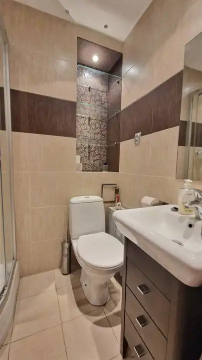 - Media Ogrzewanie: C.O. miejskie; Woda: ciepła - piecyk gazowy; Gaz: tak - miejski