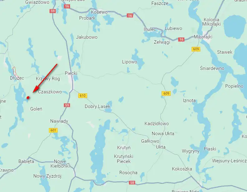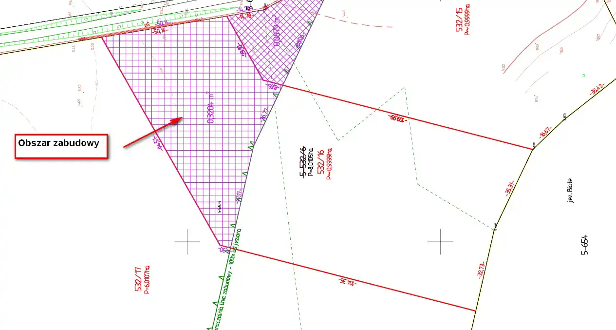 Teren o powierzchni 9999 m2, szer. frontu 50 m, nie objęty MPZP, z dostępem do jeziora - 68 m linii brzegowej.