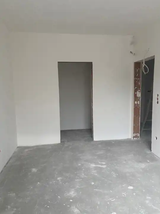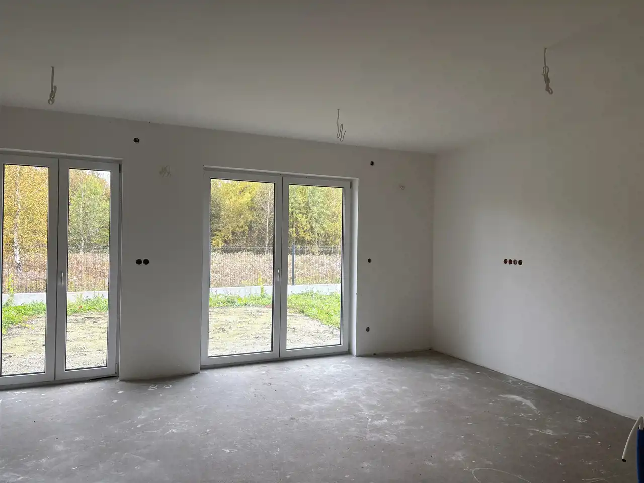 Budynek ocieplony, dach kryty styropapą, instalacje pod podłączenie klimatyzacji i fotowoltaiki, światłowód, okna trzyszybowe, wewnątrz wykonano gladzie i pomalowano na biało, zainstalowano parapety wewnętrzne