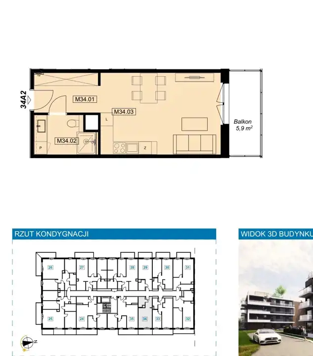 - Charakterystyka mieszkania 32.7 m2, 1 pokój