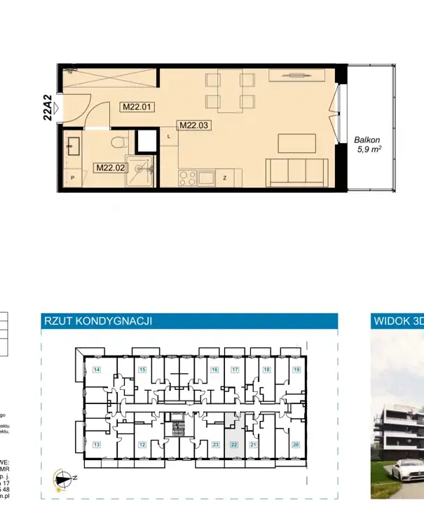 z balkonem na 1, 2 lub 3 piętrze, dostępna wygodna winda