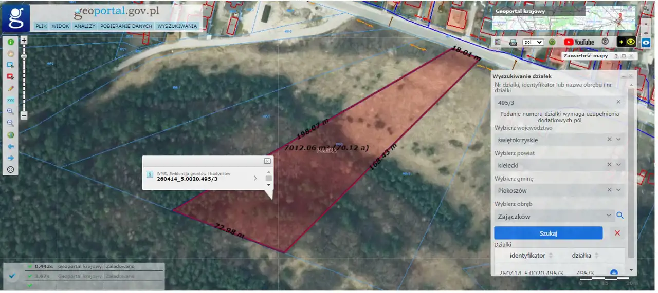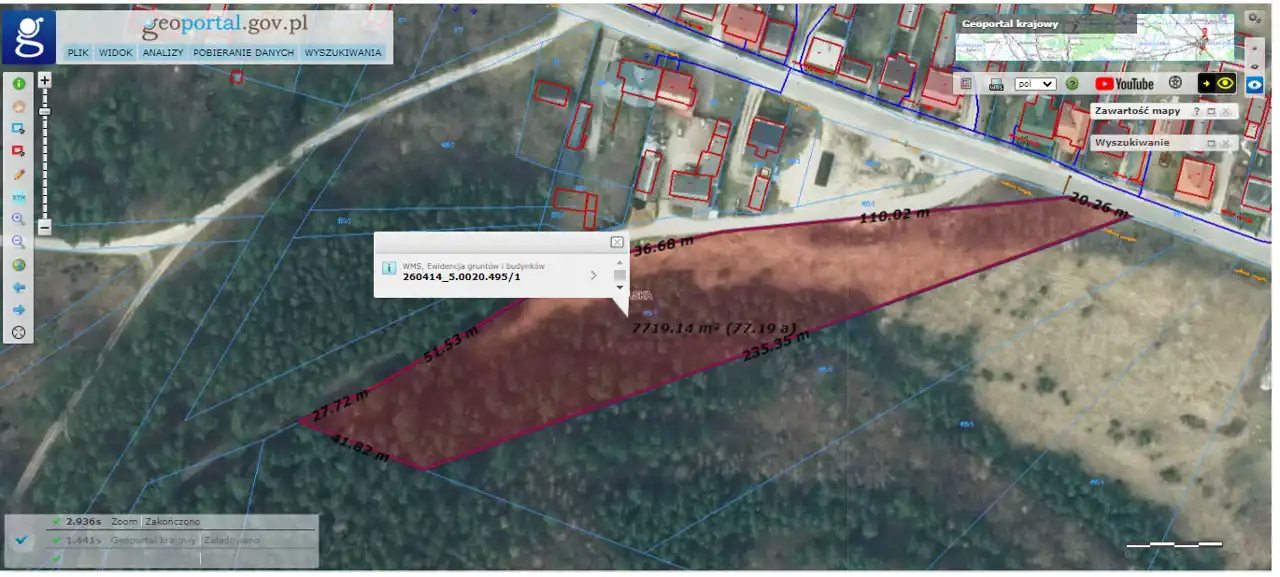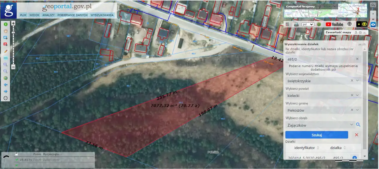 Distance to Kielce is 20 km, and approximately 10 km to Chęciny. Zajączków is located within the Chęcińsko-Kielecki Landscape Park. The plot is situated on the edge of a forest. In the vicinity, there is a school, Miedzianka Mountain, and detached houses.