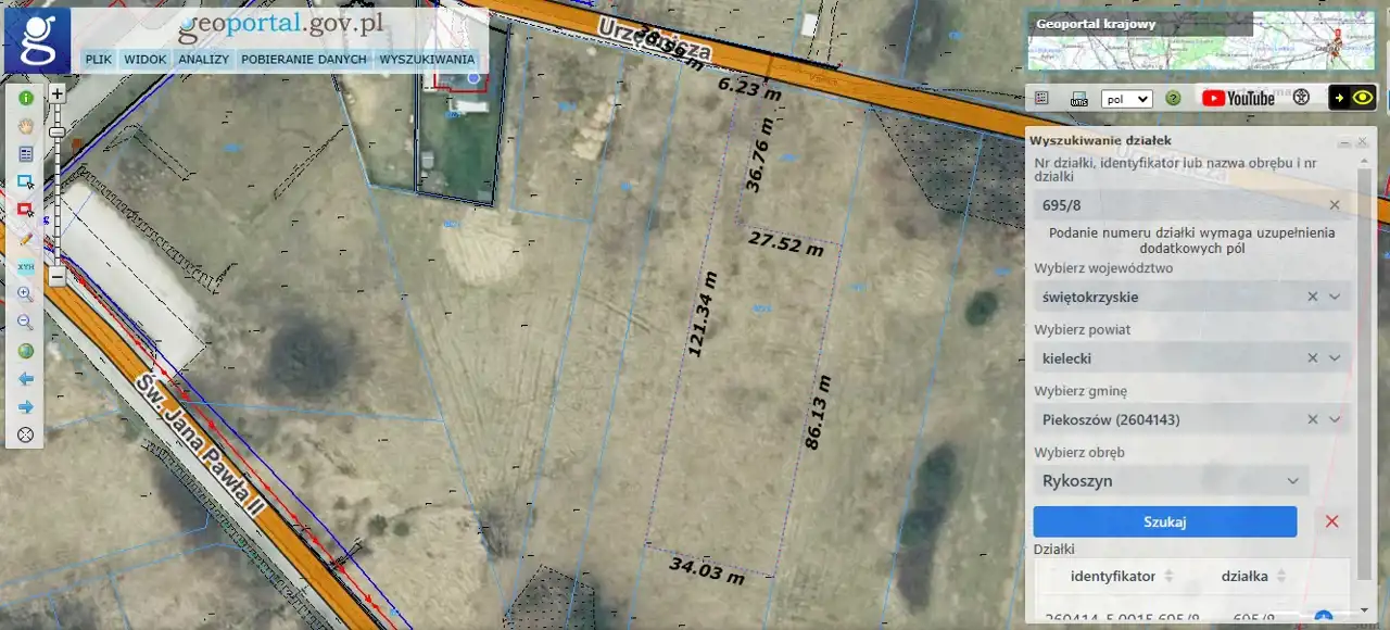 For sale: a 3,094 m² plot located on Urzędnicza Street in Rykoszyn, Piekoszów municipality.