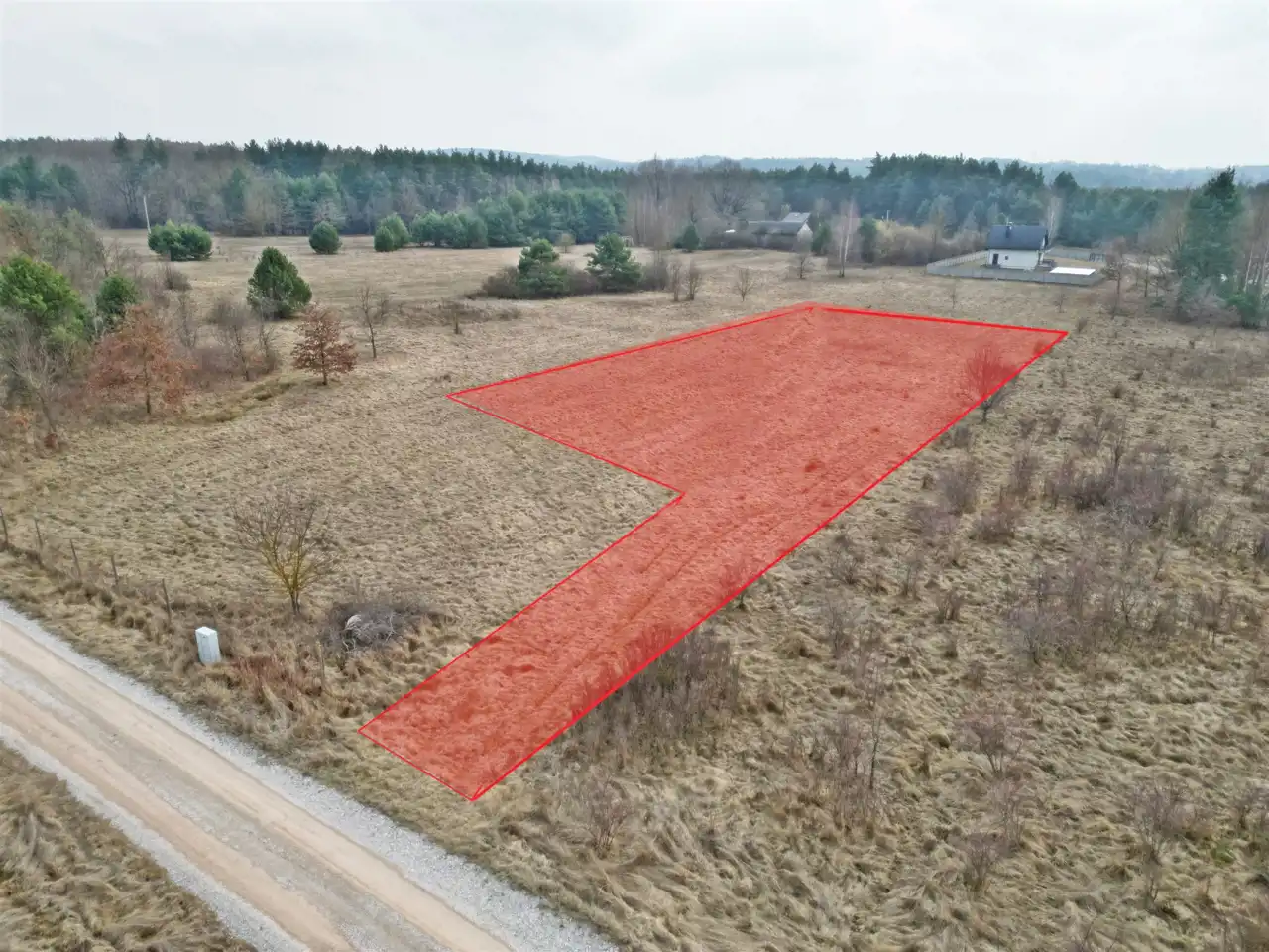 Działka położona w sąsiedztwie lasów i zabudowy jednorodzinnej.