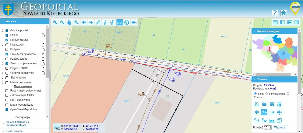 Location: Quiet and peaceful area with excellent location and convenient access to Kielce. The surroundings of the plot include single-family homes and forest. The area is well-served with a primary school nearby (around 400m), and shops, markets, green areas, and recreational spots (Moczydło Nature Reserve, Chelosiowa Jama) in close proximity. The center of Kielce is about 13 km away (20 minutes by car).