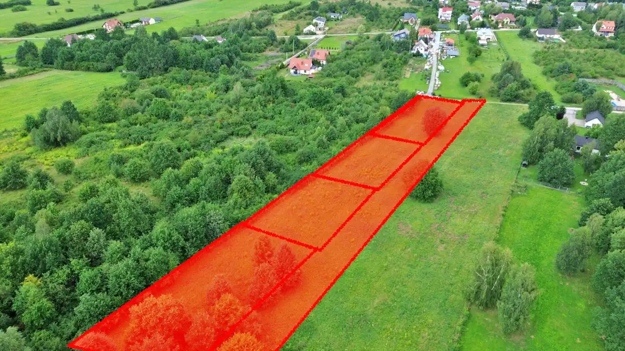 Quiet, peaceful area. Very good location with convenient access to Kielce. The plot is surrounded by single-family houses and forest.