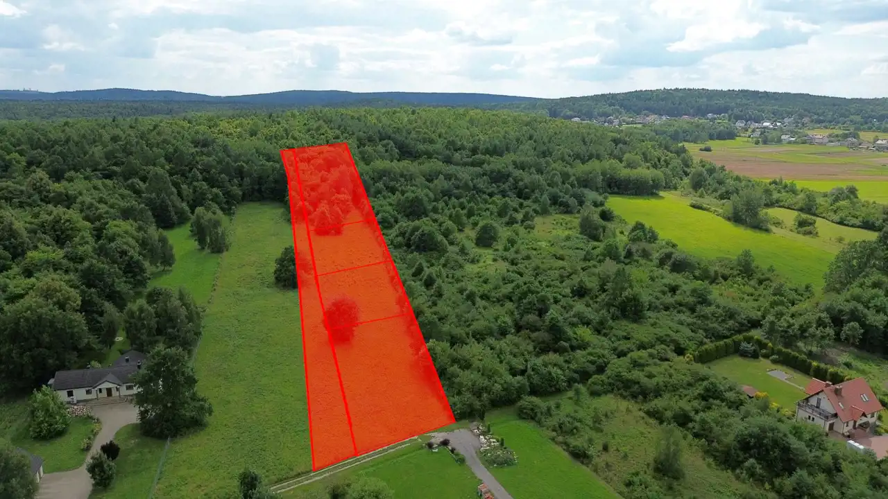 For sale a land property with an area of 1,678 m2, located in the village of Jaworznia, Piekoszów commune, in a charming setting. Directly behind the plot is the Góra Jaworzyńska nature reserve.