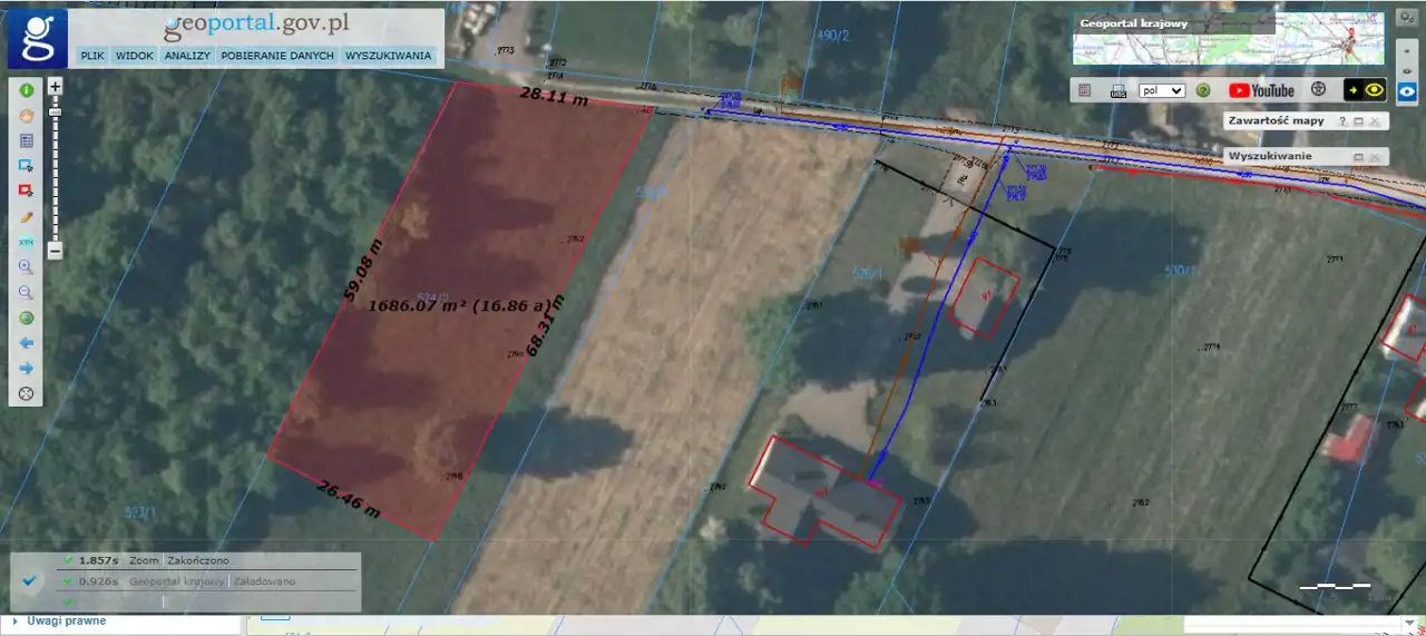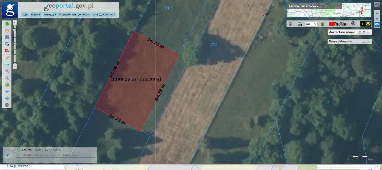 C) o pow. i 1201 m2 (wymiary: 26,5m [szer. od frontu] x 44,5m x 26,5m x 45m) w cenie 80 000 PLN,