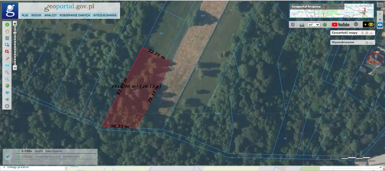 D) area 2,811 m2 (dimensions: 32.5 m [front width] x 92 m x 36 m x 78 m) at the price of 154,000 PLN,