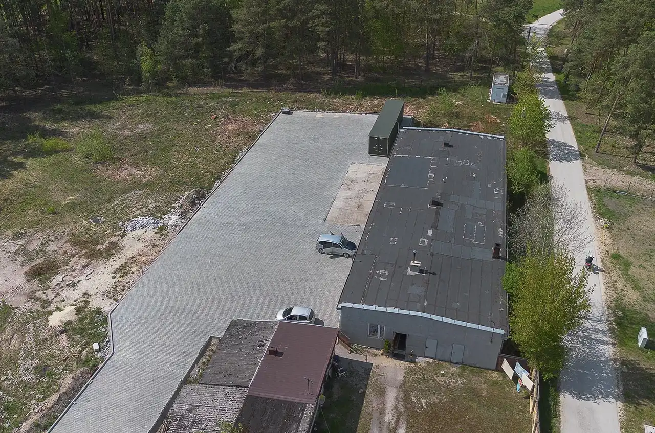 Przed halą utwardzony kostką plac manewrowy o pow. około 1300m2. Dojazd dla TIR.