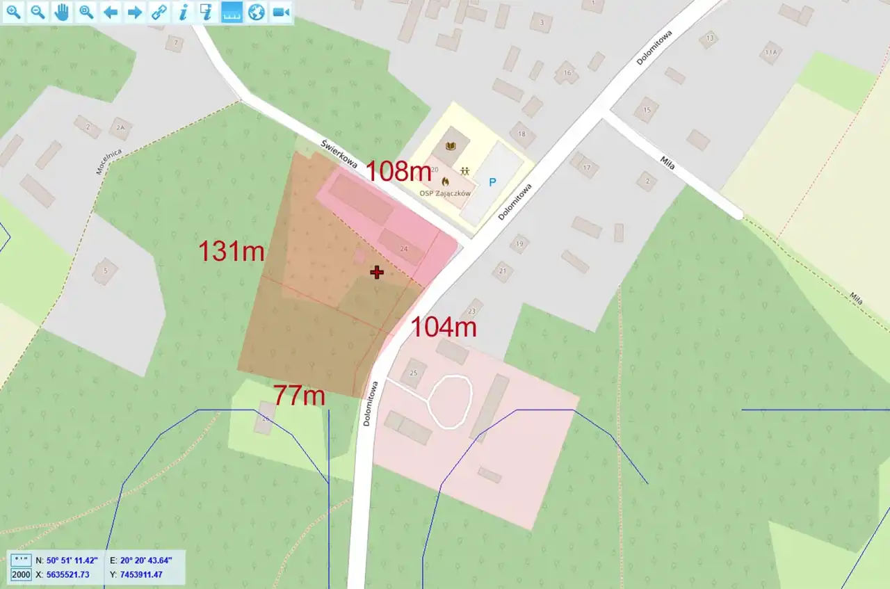 Distance to Kielce: 20 km; to Chęciny: approx. 10 km. Zajączków is located within the Chęciny-Kielce Landscape Park. The plot is situated on the edge of a forest.