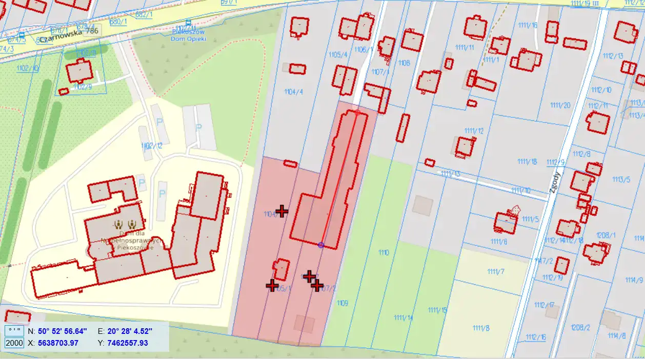 - Otoczenie działki zabudowane