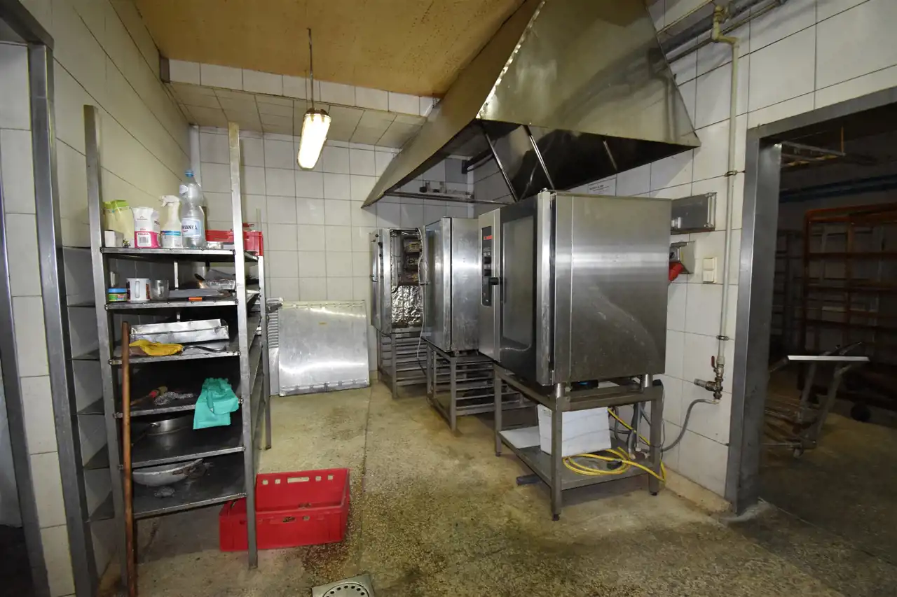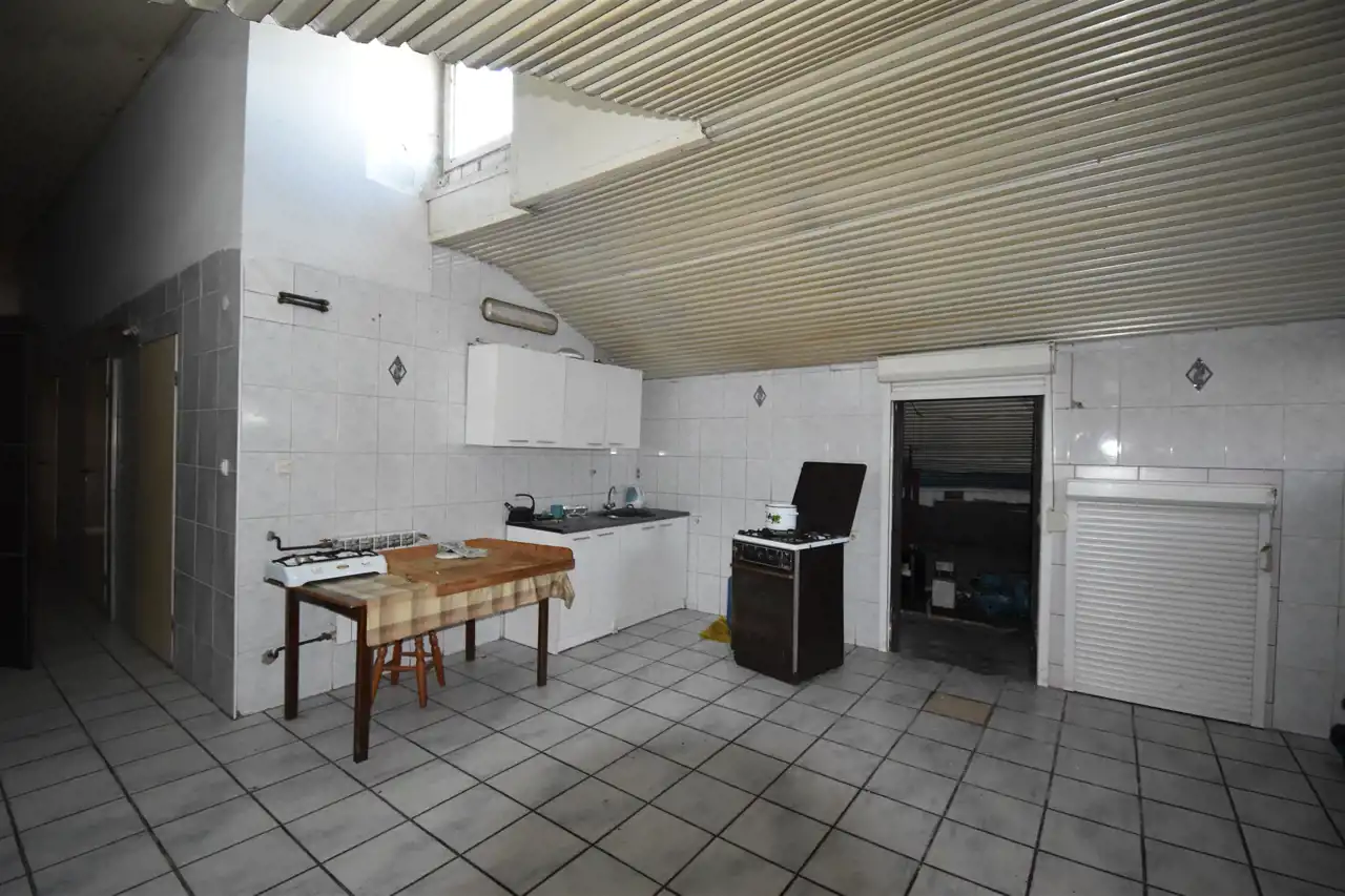 The hall can also be adapted for metal sheet processing, painting activities, or as a warehouse. In front of the hall, there is a maneuvering area and parking for several cars.