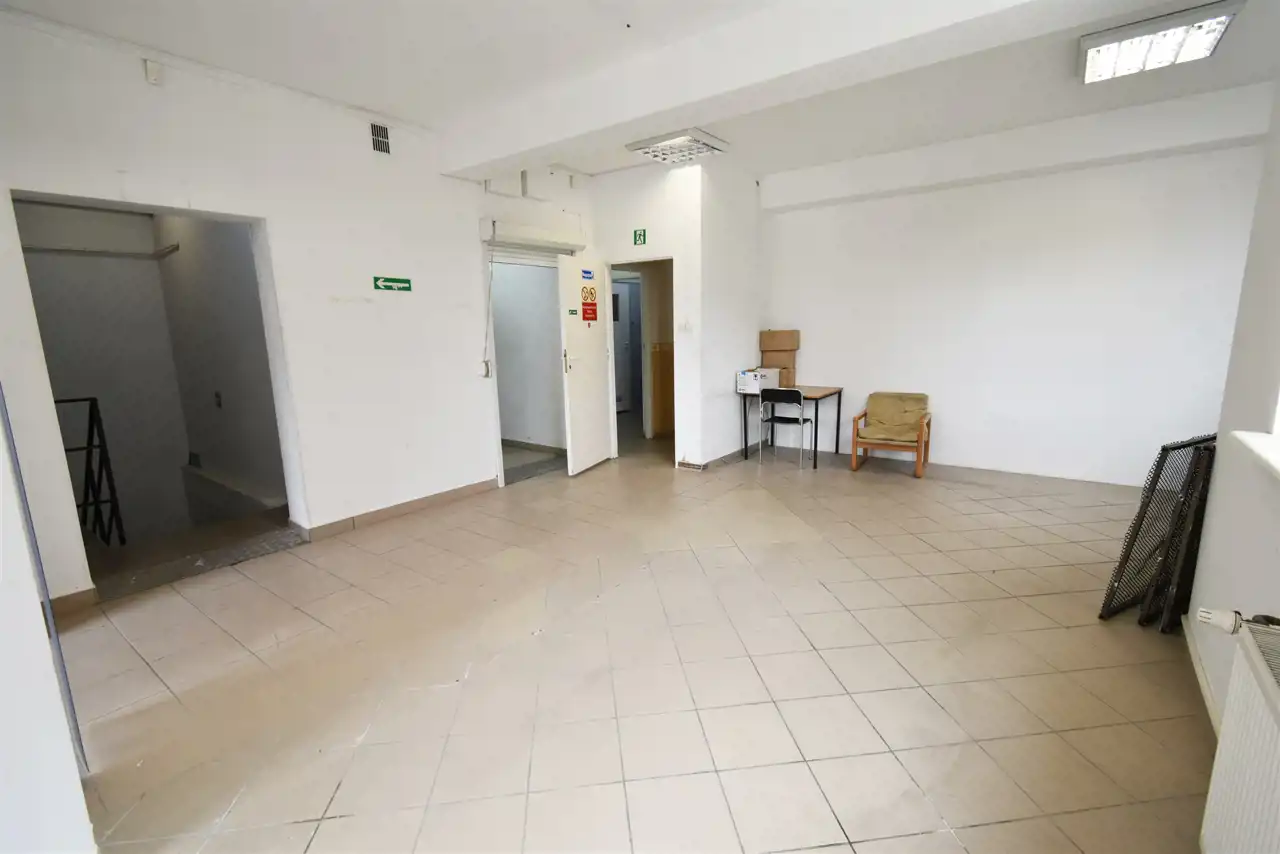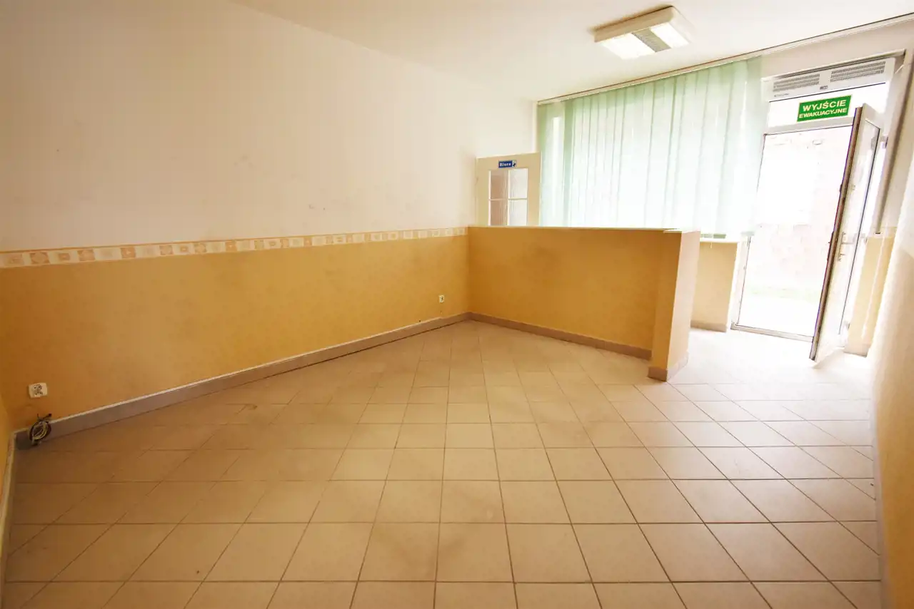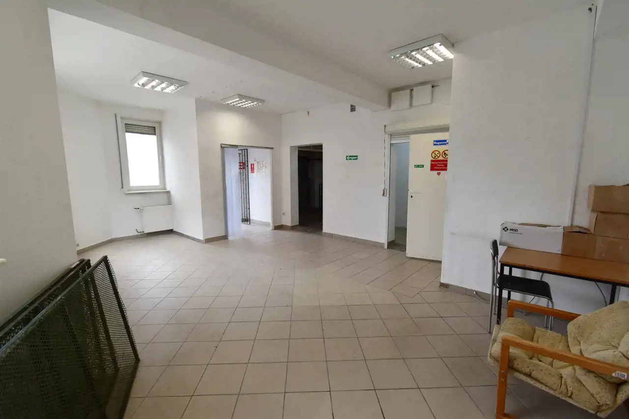 For rent: Office and commercial space of approximately 120 sqm, located on the ground floor of a mixed-use building constructed in 2001, situated in Piekoszów.