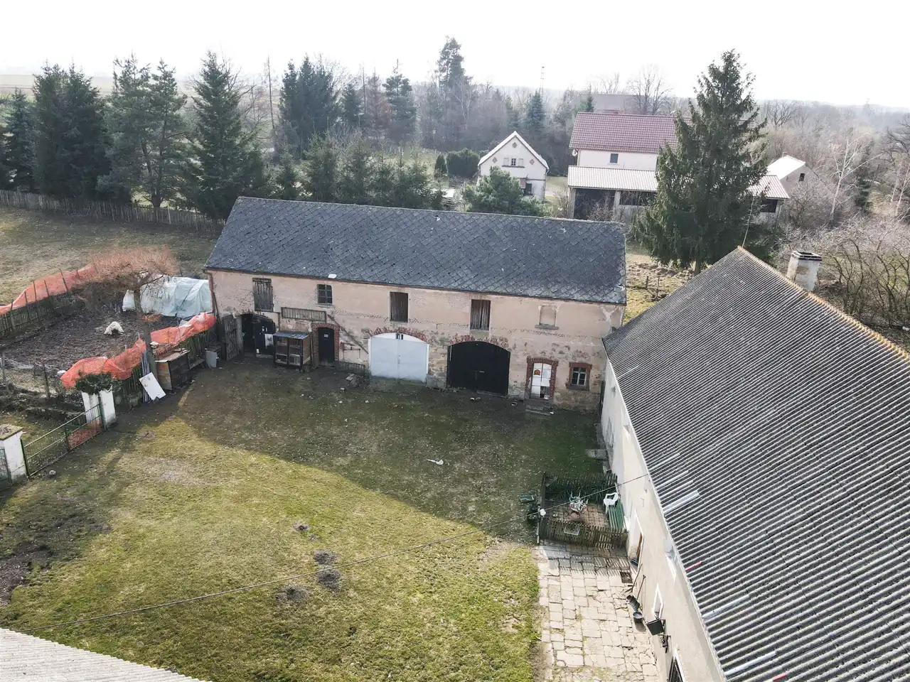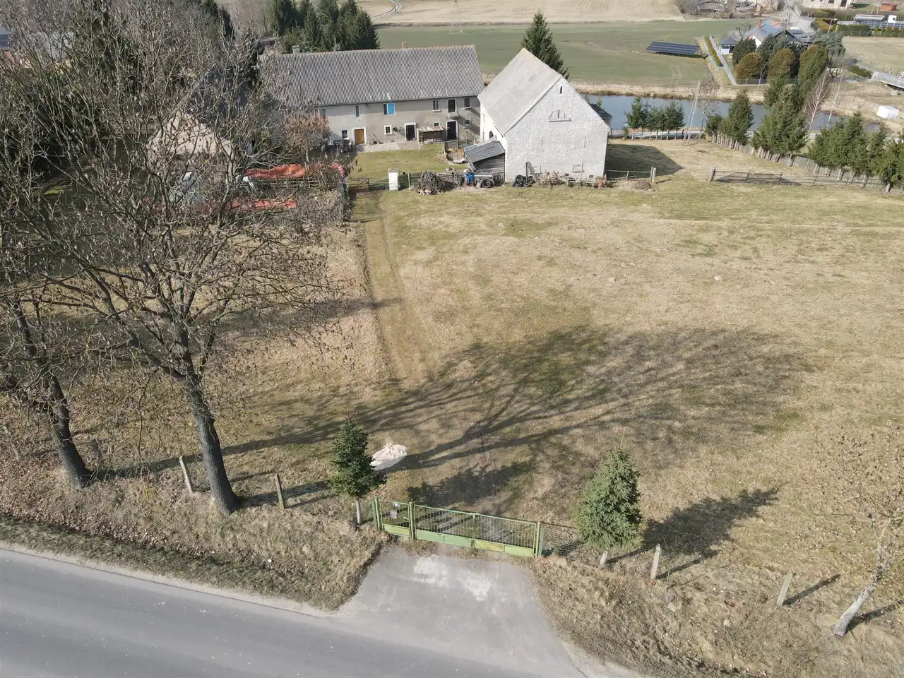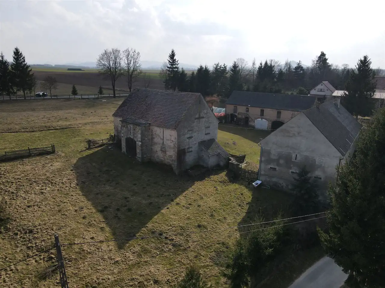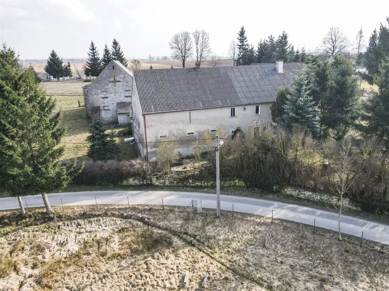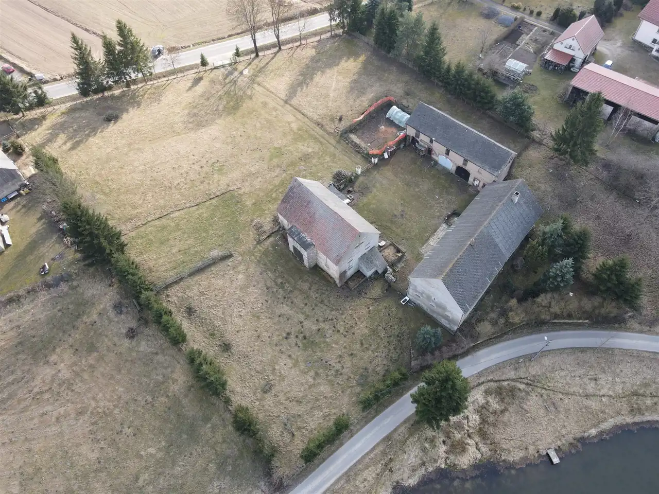 Na działce o powierzchni 59 arów znajduje się budynek mieszkalno-gospodarczy oraz dwa budynki gospodrcze z dużym potencjałem.