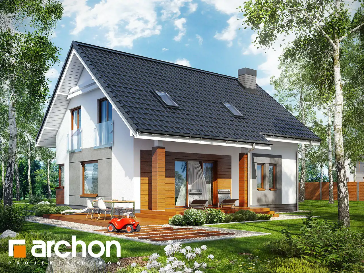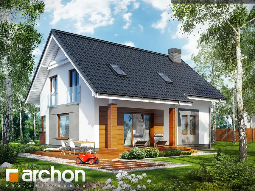 Nieduży dom o nowoczesnej architekturze i funkcjonalnej przestrzeni wewnętrznej.