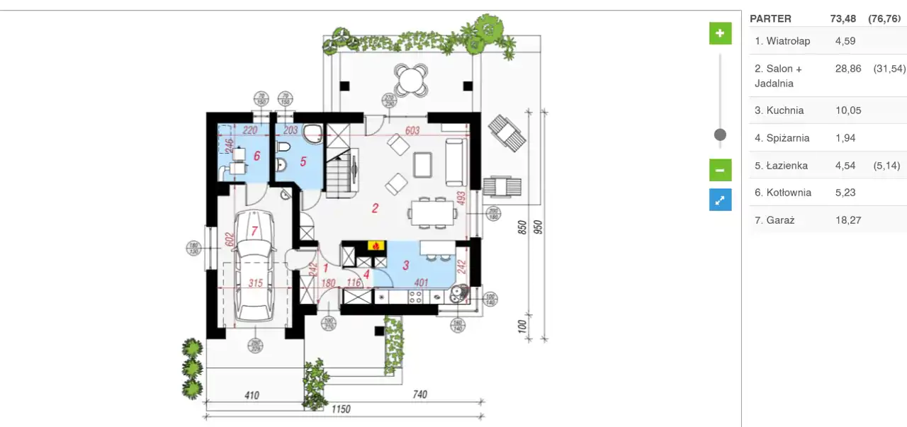 Powierzchnia netto domu bez kotłowni, garażu - 114,52 m²