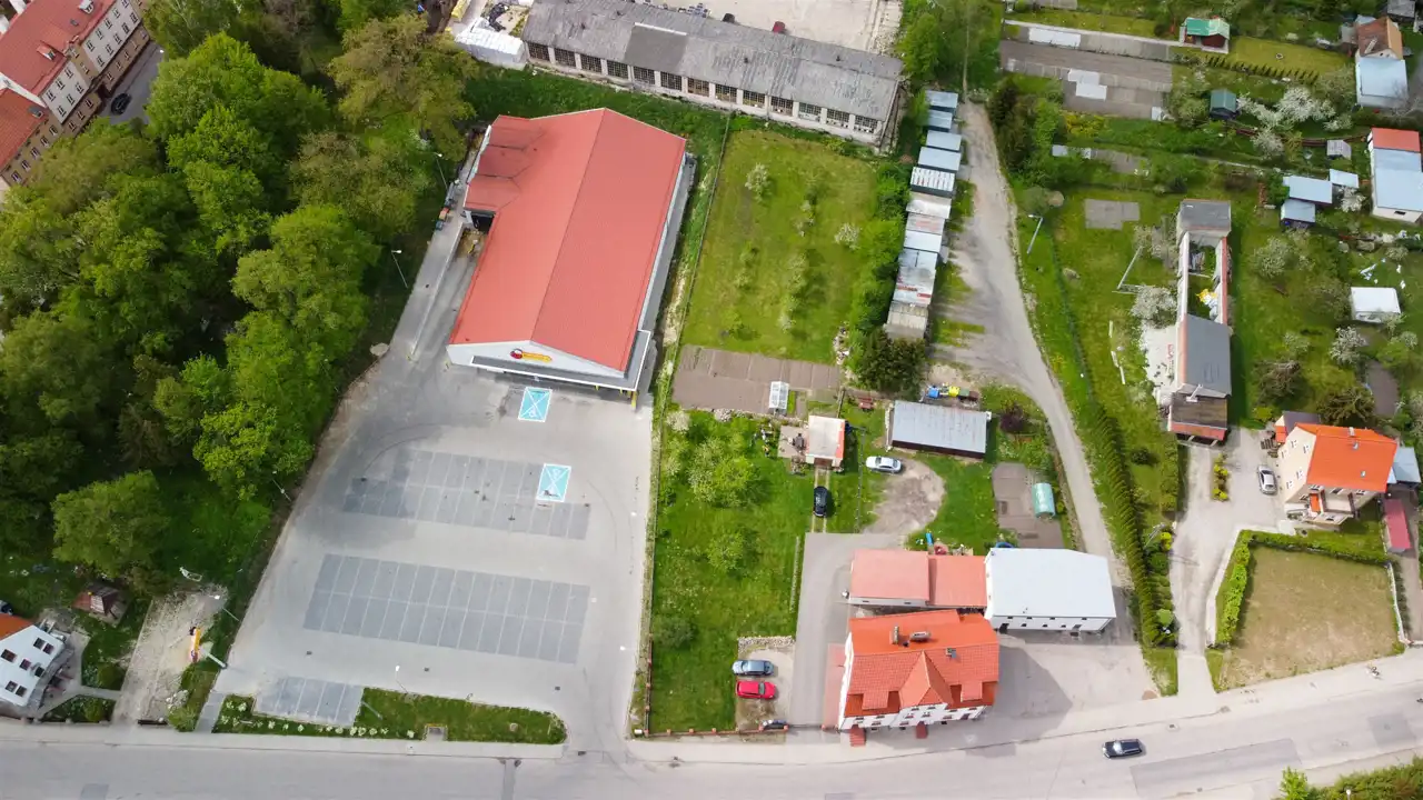 - Działka graniczy z działką na której aktualnie znajduje się sklep Biedronka. Działka zadbana, koszona.