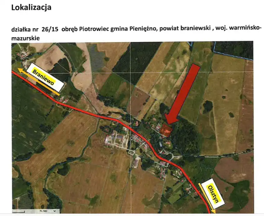 na sprzedaż nieruchomości gruntowej zabudowanej budynkiem użytkowym o powierzchni użytkowej 386,93 m2 oraz budynkiem niemieszkalnym o powierzchni zabudowy 26,00 m2, oznaczoną w ewidencji gruntów obrębu Piotrowiec jako działka nr 26/15 o powierzchni 0,4799 ha, położoną we wsi Piotrowiec, dla której Sąd Rejonowy w Braniewie - V Wydział Ksiąg Wieczystych prowadzi księgę wieczystą o numerze EL1B/00020731/9.