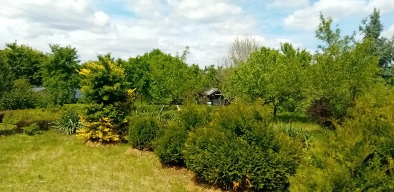 Na sprzedaż działki przylegające do siebie o łącznej powierzchni 6500m2 z niewielkim budynkiem przystosowanym do celów mieszkalno-rekreacyjnych o powierzchni zabudowy ok. 35m2 plus przybudówka gospodarcza o powierzchni ok. 15m2. Budynek wzniesiony w technologii tradycyjnej, ocieplony 10cm warstwą styropianu, ogrzewany za pomocą piecyka typu koza. Teren posesji ogrodzony siatką. Wjazd bramą stalową dwuskrzydłową. Na działce znajdują się zadbane, wieloletnie nasadzenia: tuje, świerki oraz drzewka owocowe. Dodatkowym atutem ogrodu jest domek narzędziowy. W bezpośrednim sąsiedztwie nieruchomości znajdują się nowoczesne budynki mieszkalne.