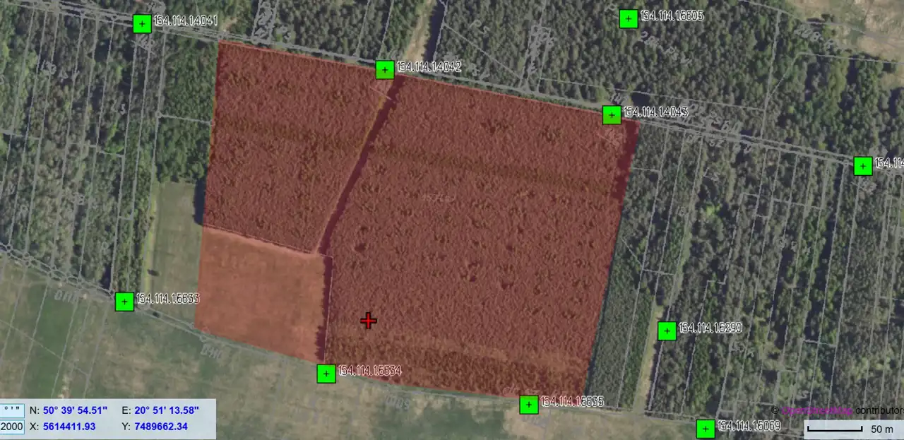 Działka wymiarowa. W kształcie prostokąta, płaska. Las zadbany, poddawany planowanym działaniom pielęgnacyjnym. Nieruchomość posiada księgę wieczystą wolną od jakichkolwiek obciążeń.
