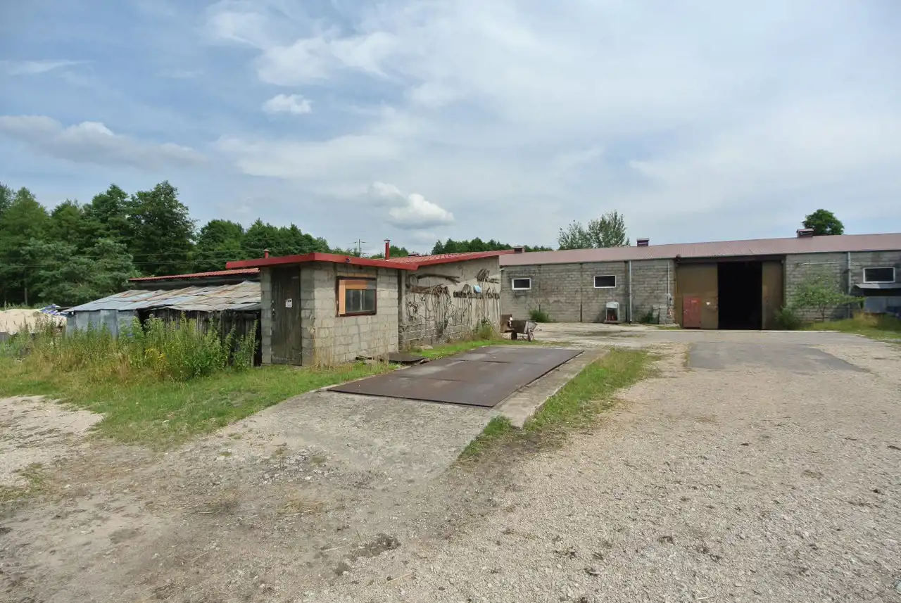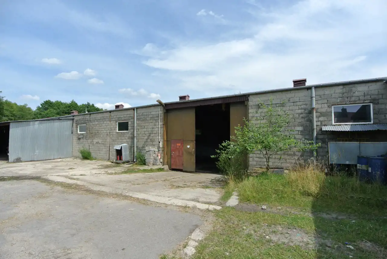 For rent: a hall with an area of approximately 2000m² located in Pierzchnianka, Pierzchnica municipality. The hall is situated on a partially developed plot of 1.86 hectares. The building is made of brick and can be used for production, storage, or services, and it has no heating. The land is fenced and partially paved, allowing for truck maneuvers.