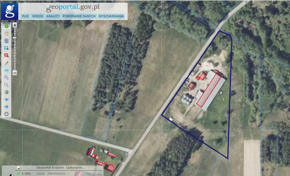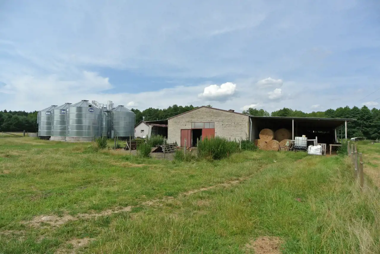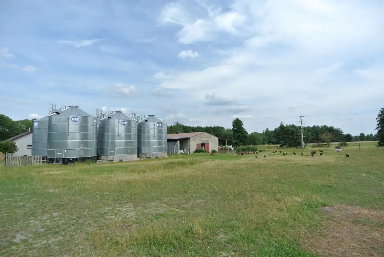 Na działce znajduje się również dom ok. 40m2 (wymaga odświeżenia), wiaty na maszyny oraz silosy zbożowe.