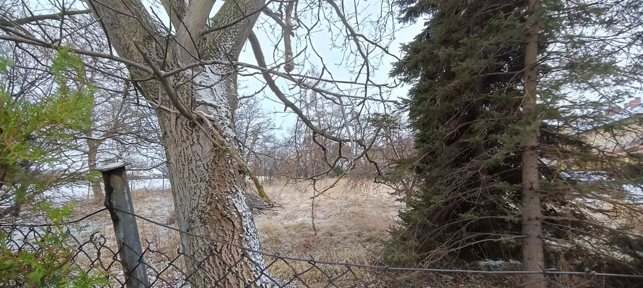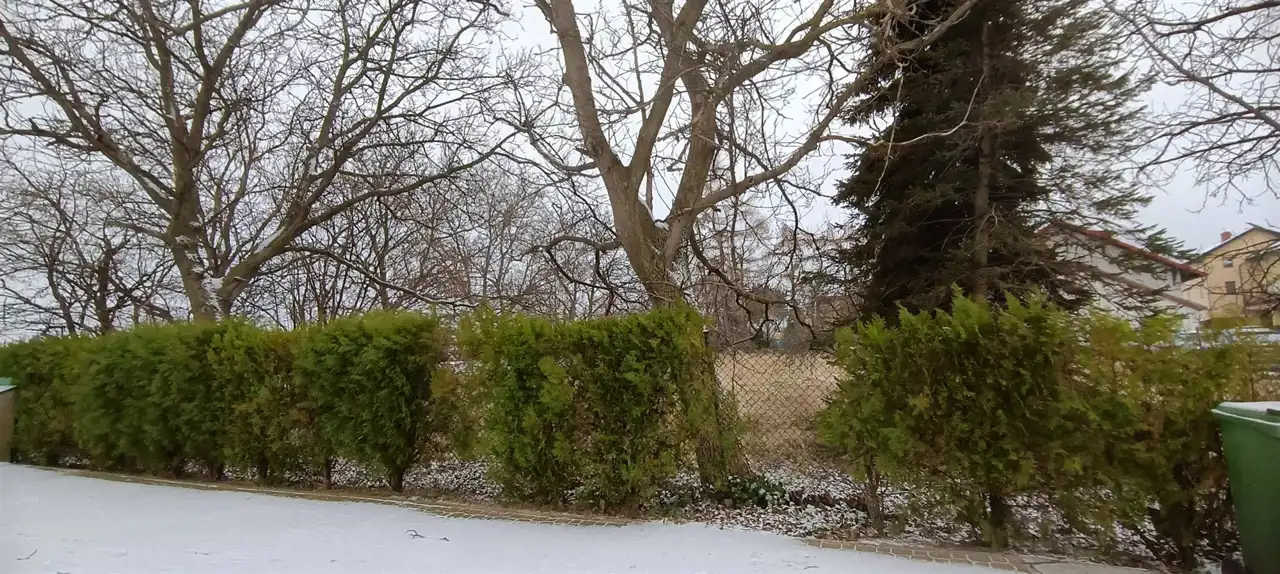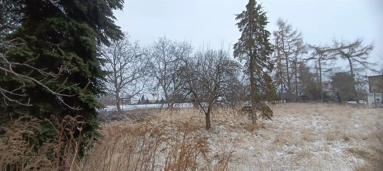 teren płaski, działka ogrodzone w całości, gotowa do budowy, przy granicy działki starodrzew