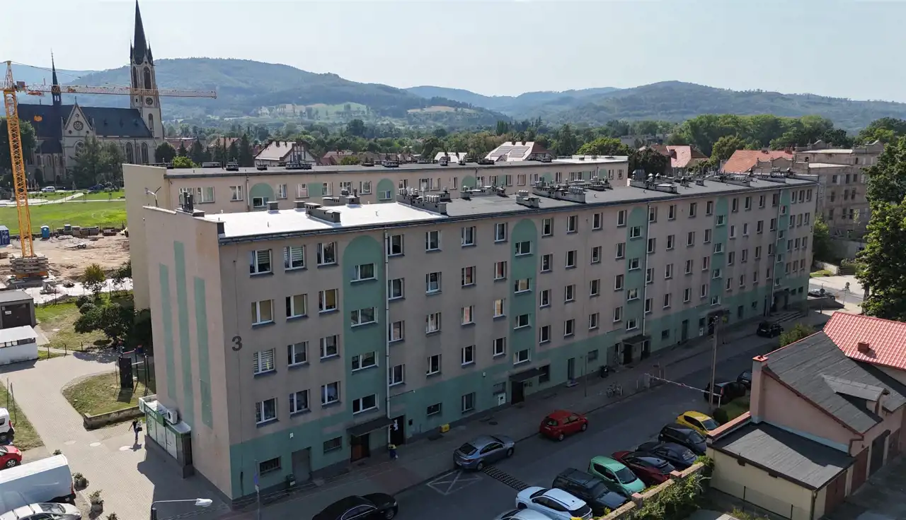 Zadbany budynek po termomodernizacji, ogrzewanie miejskie. Ładnie utrzymana zieleń przed budynkiem. Klatka schodowa odświeżona.