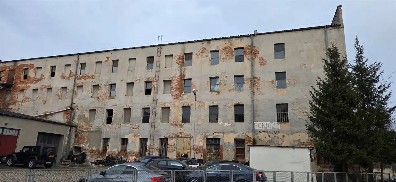 Nieruchomość zabudowana jest jednym budynkiem produkcyjno-magazynowym o czterech kondygnacjach, wzniesionym na przełomie XIX i XX wieku. Obiekt był częściowo remontowany w latach powojennych.