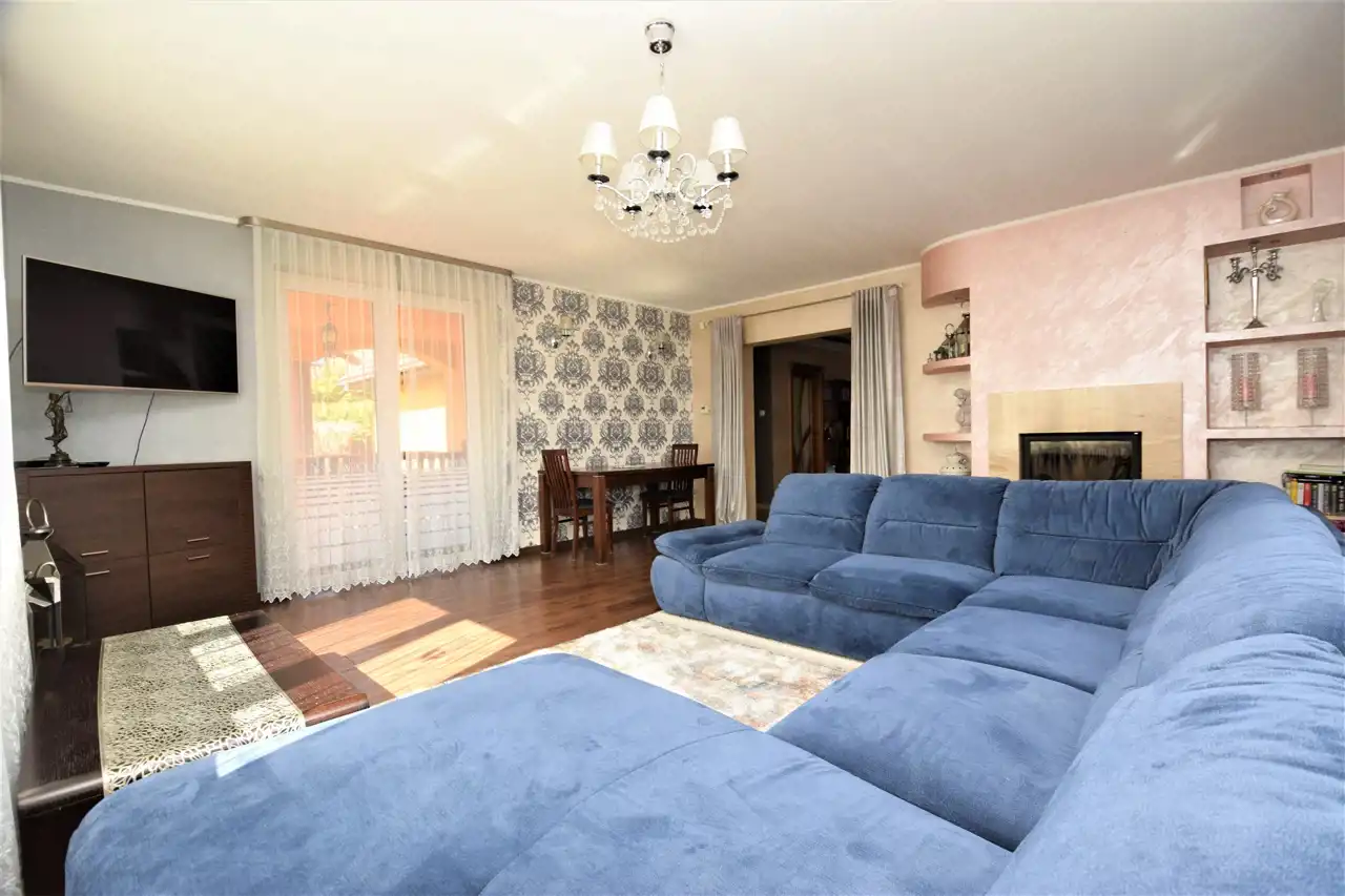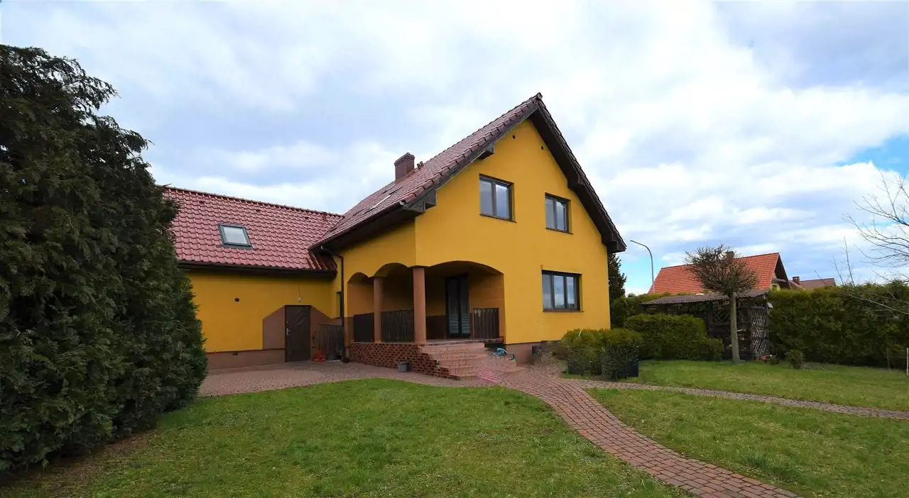 Dom zadbany i utrzymany w bardzo dobrym stanie technicznym na podłogach panele i terakota, ściany malowane, gipsowane, częściowo pokryte tapetami.