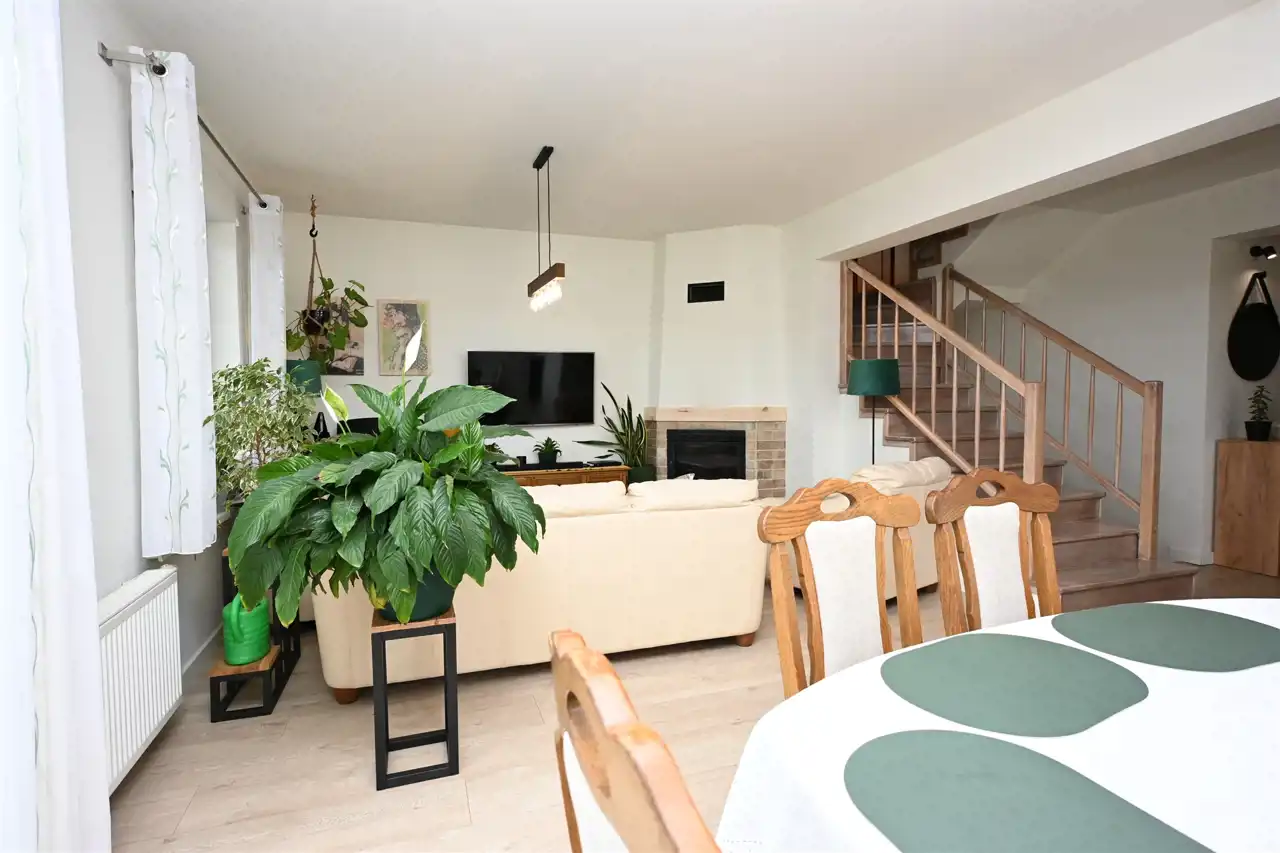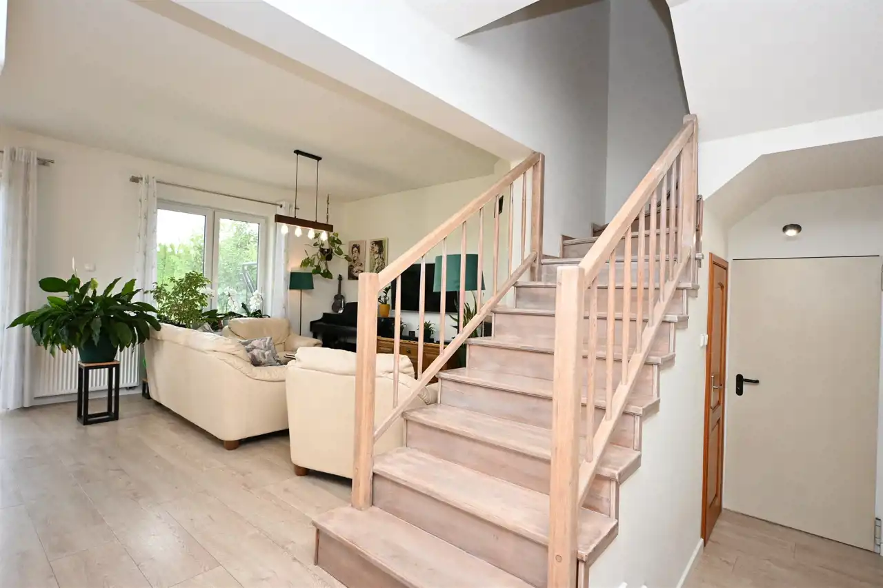 Dom o powierzchni użytkowej ok. 139 m² usytuowany na starannie zagospodarowanej działce o powierzchni 1 380 m², w otoczeniu zieleni i rzeki. To propozycja dla osób, które poszukują spokojnego miejsca do życia, z funkcjonalnym rozkładem pomieszczeń i garażem.