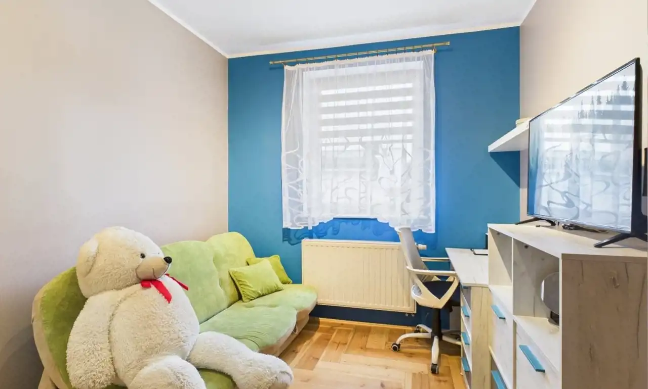Bliskość szkoły podstawowej, placów zabaw, sklepów w połączeniu ze spokojną okolicą w pobliżu lasu sprawia, że oferta jest idealna dla rodziny z małymi dziećmi.